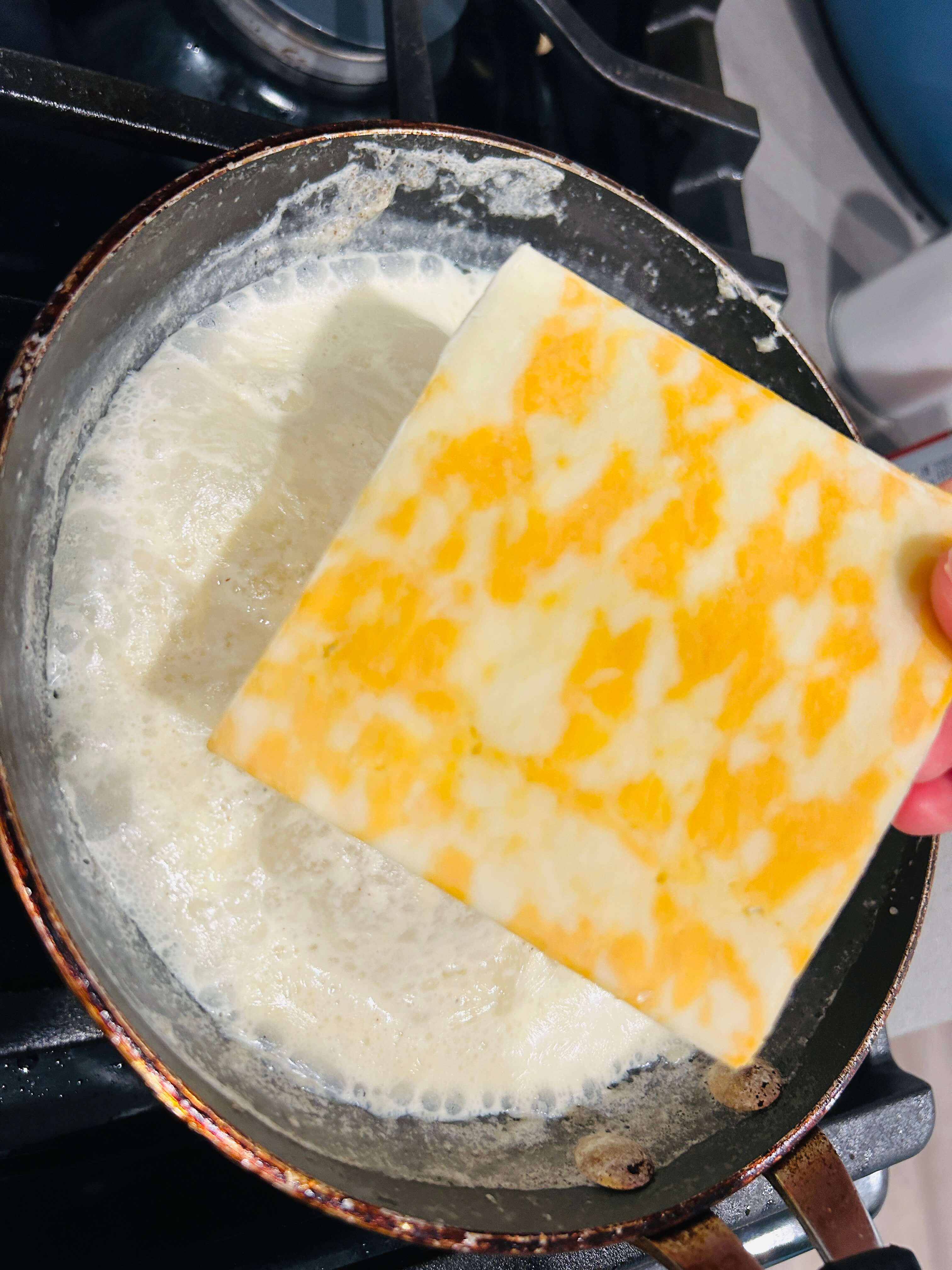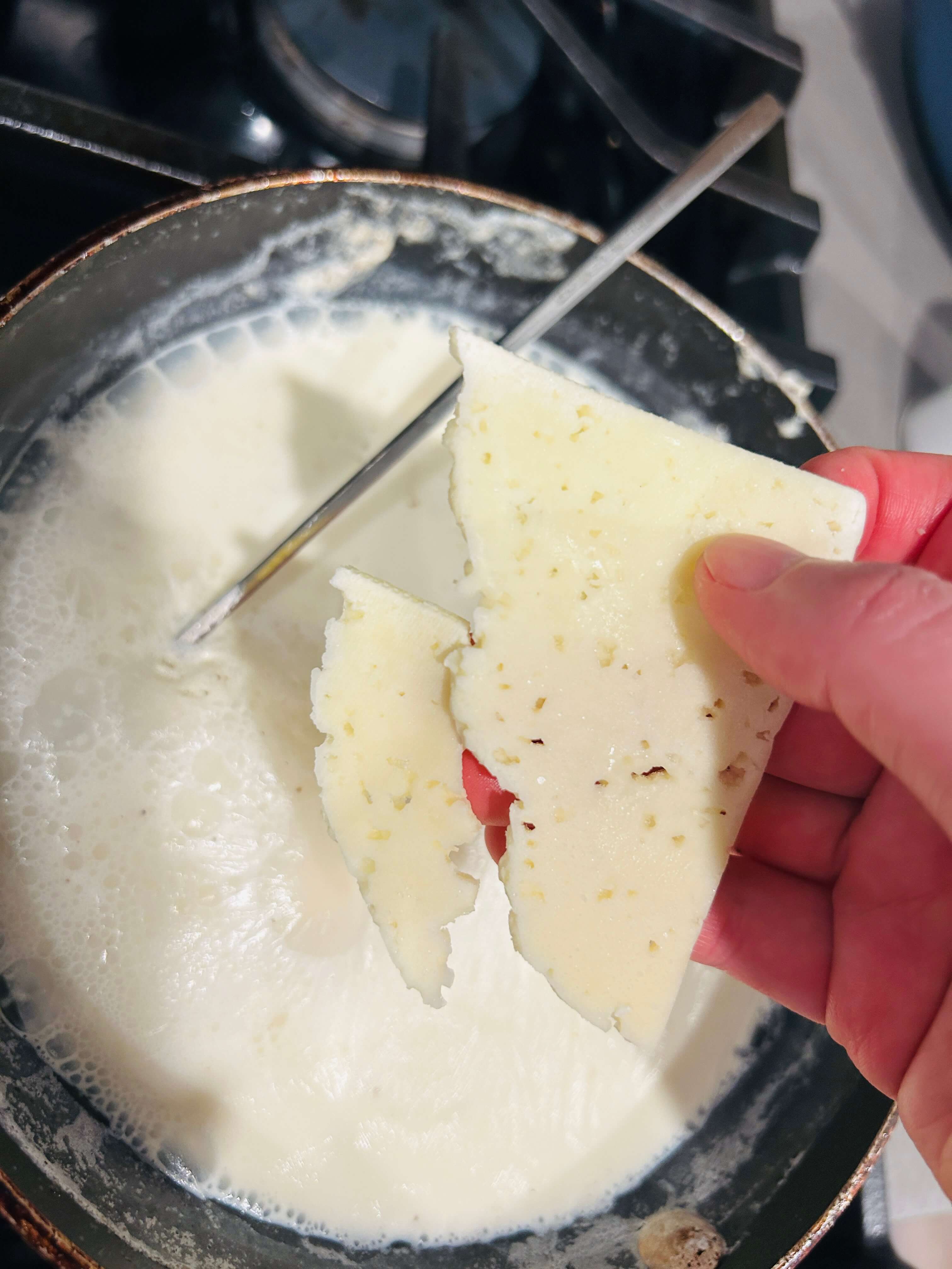 11. 치즈를 넣어 뭉글하게 끓여줍니다.