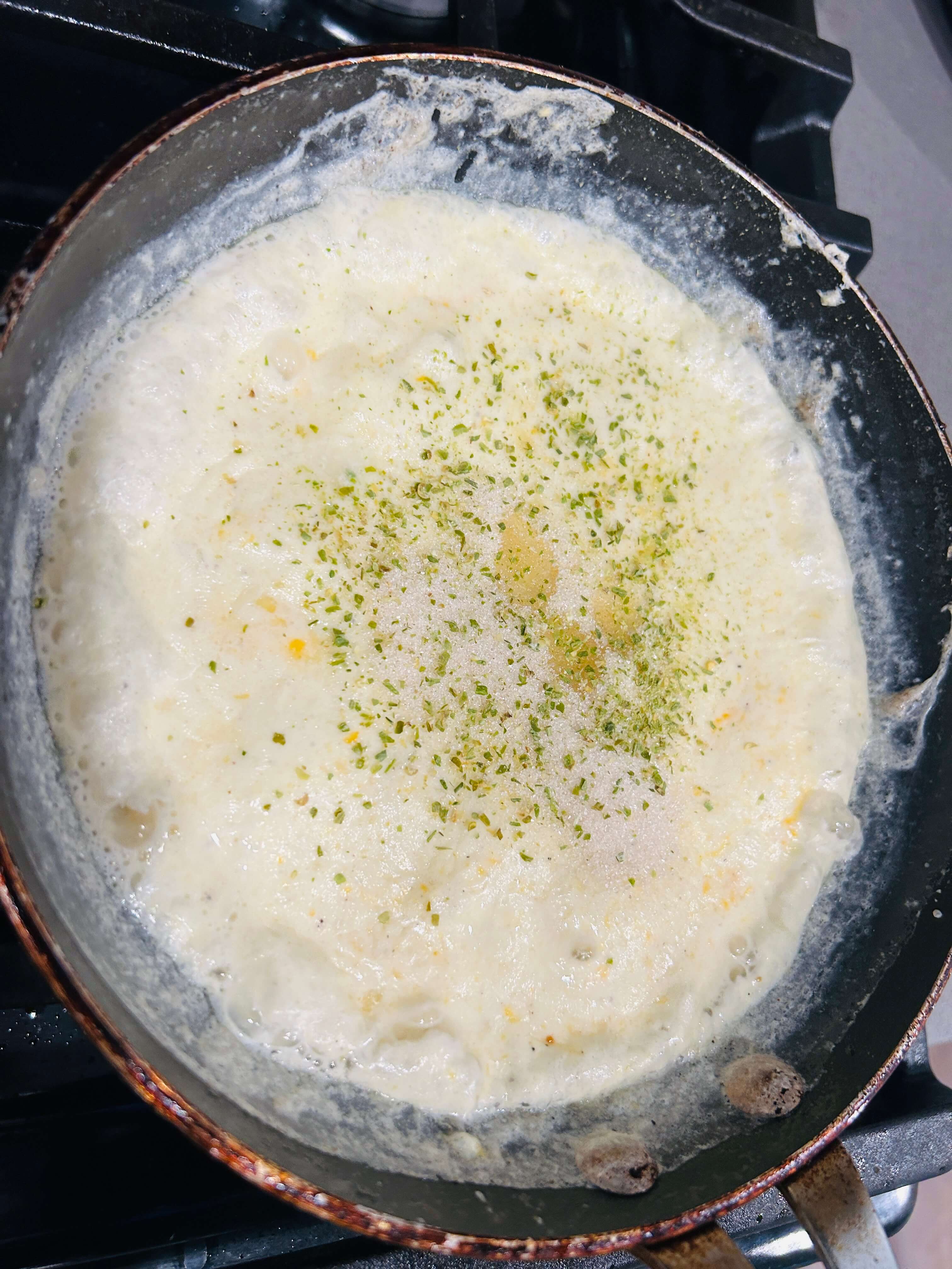 12. 마지막으로 파슬리 가루를 뿌려 소스를 마무리해줍니다.