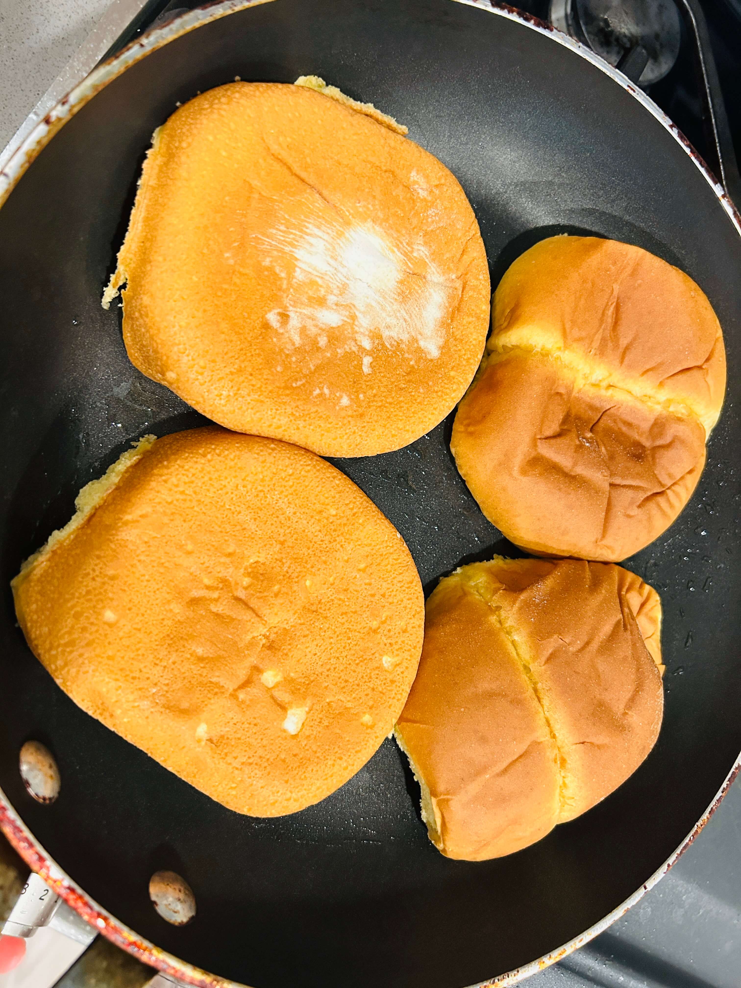 1. 버거 번은 프라이팬에 살짝 구워 준비해 줍니다.
