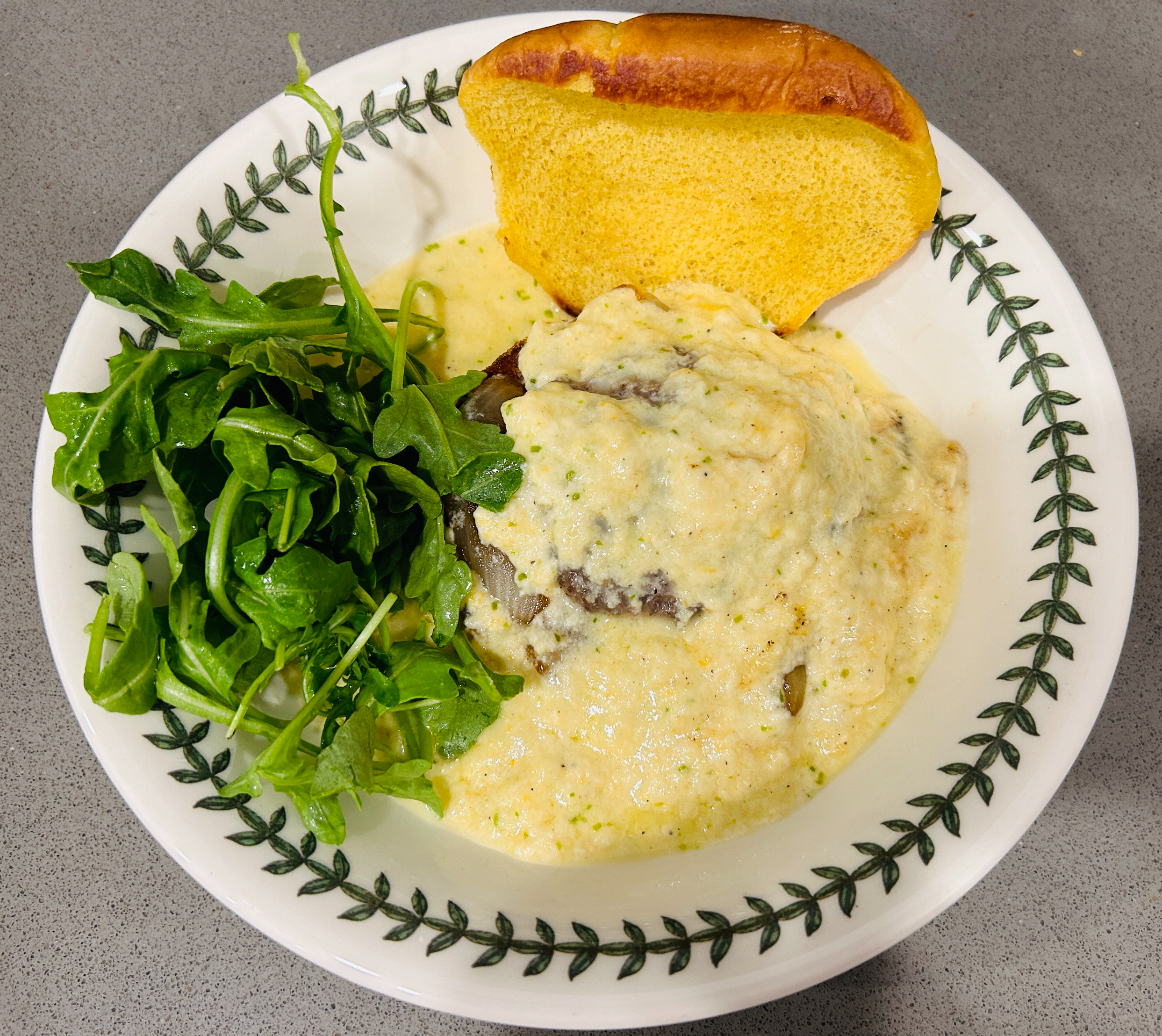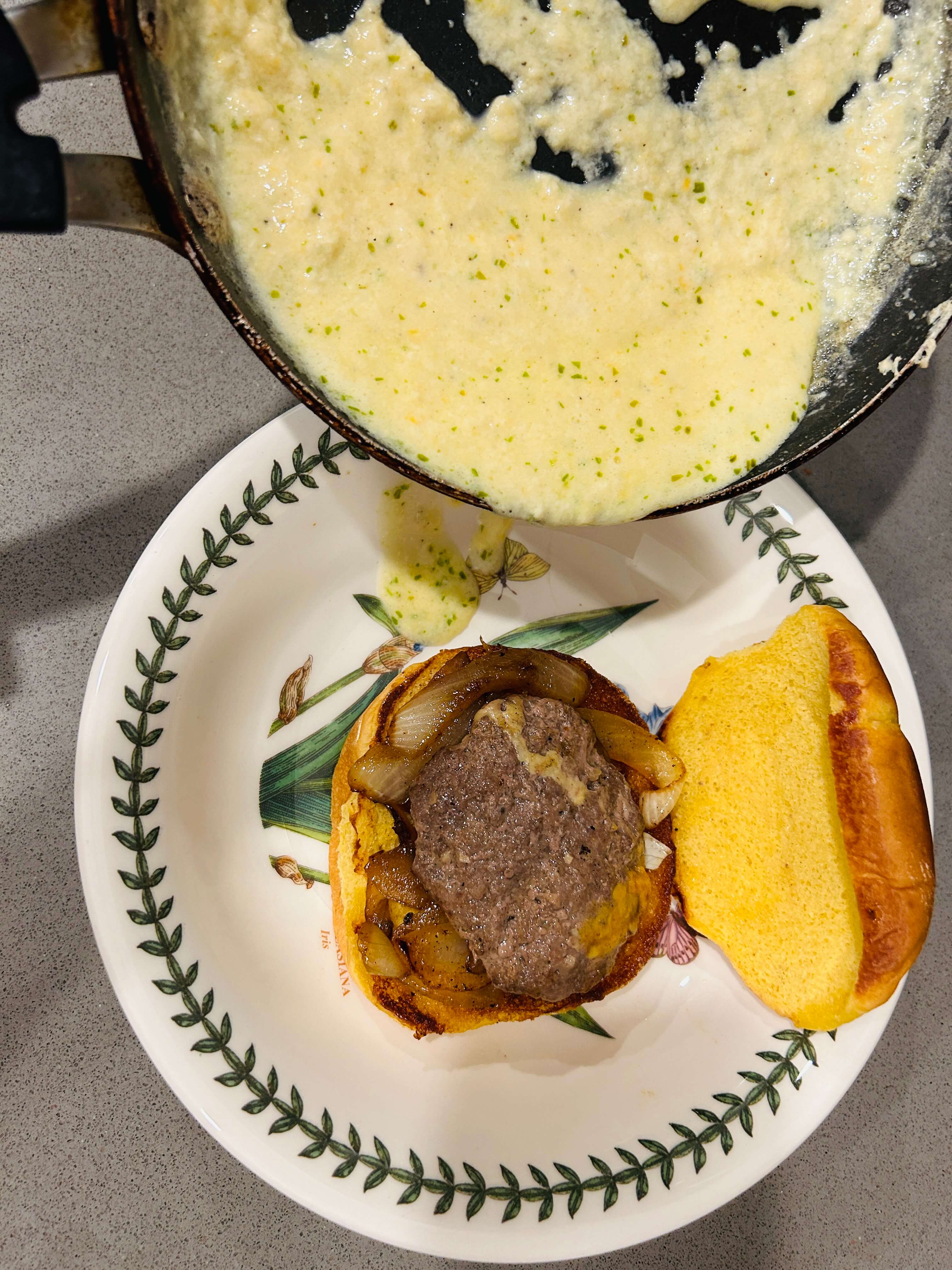매번 수제햄버거로만 만들어 먹었는데 이렇게 크림소스를 만들어서 먹으니 색다른 햄버거로 먹을 수 있어서 좋았습니다. 기름진 패스트푸드가 당기면서도 햄버거로만 부족한 그런 날들이 있는데 이 크림 햄버거가 모든 걸 충족시켜 주지 않을까 싶습니다. 치즈까지 들어간 크림소스가 고소해서 오히려 느끼하지 않을까 싶은 걱정과는 다르게 잘 어울립니다. 루꼴라의 쌉싸름하고 생생한 맛이 자칫 지루해질 수 있는 맛을 잡아주어서 이 레시피를 따라 하실 때는 다른 속재료는 취향껏 고르셔도 루꼴라만큼 한 꼭 넣는 것을 추천드립니다.