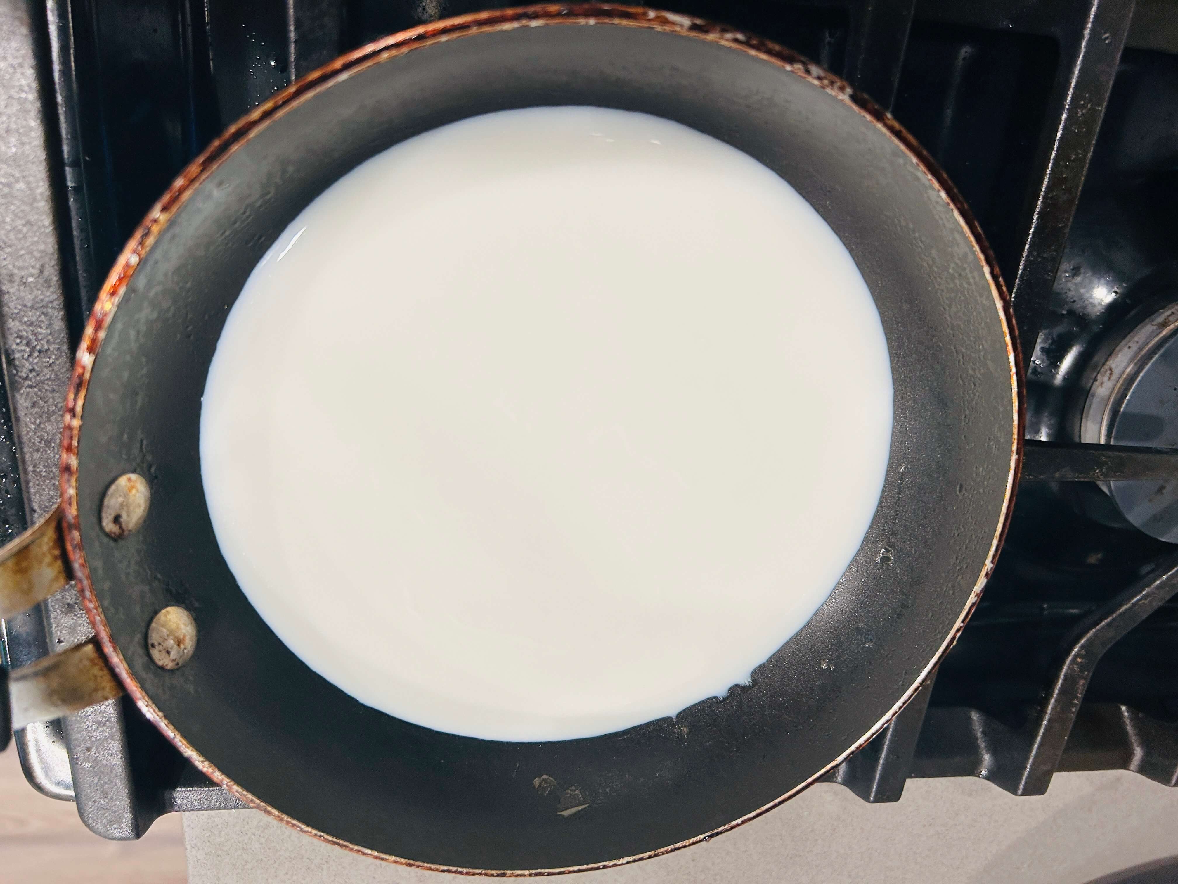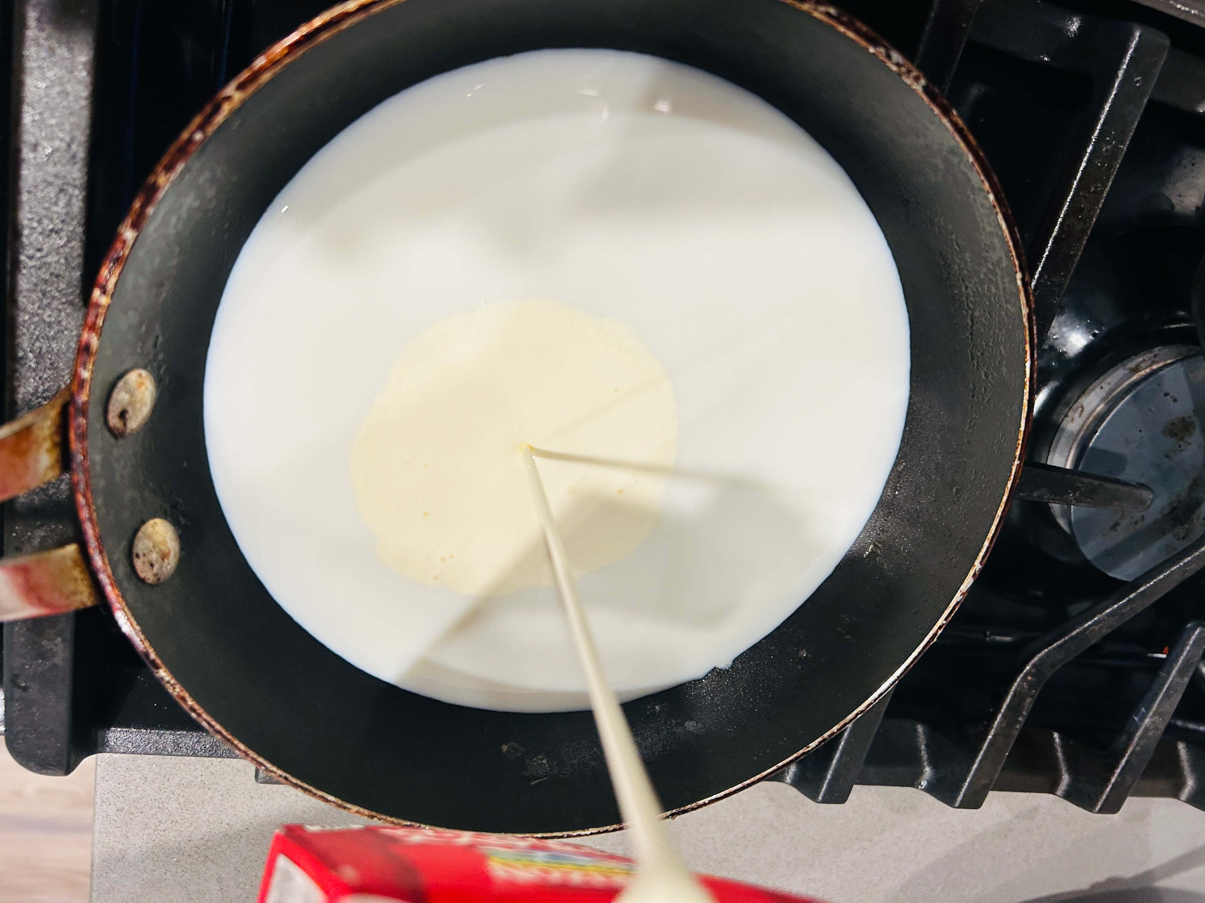 8. 작은 소스팬에 우유를 넣어줍니다.
