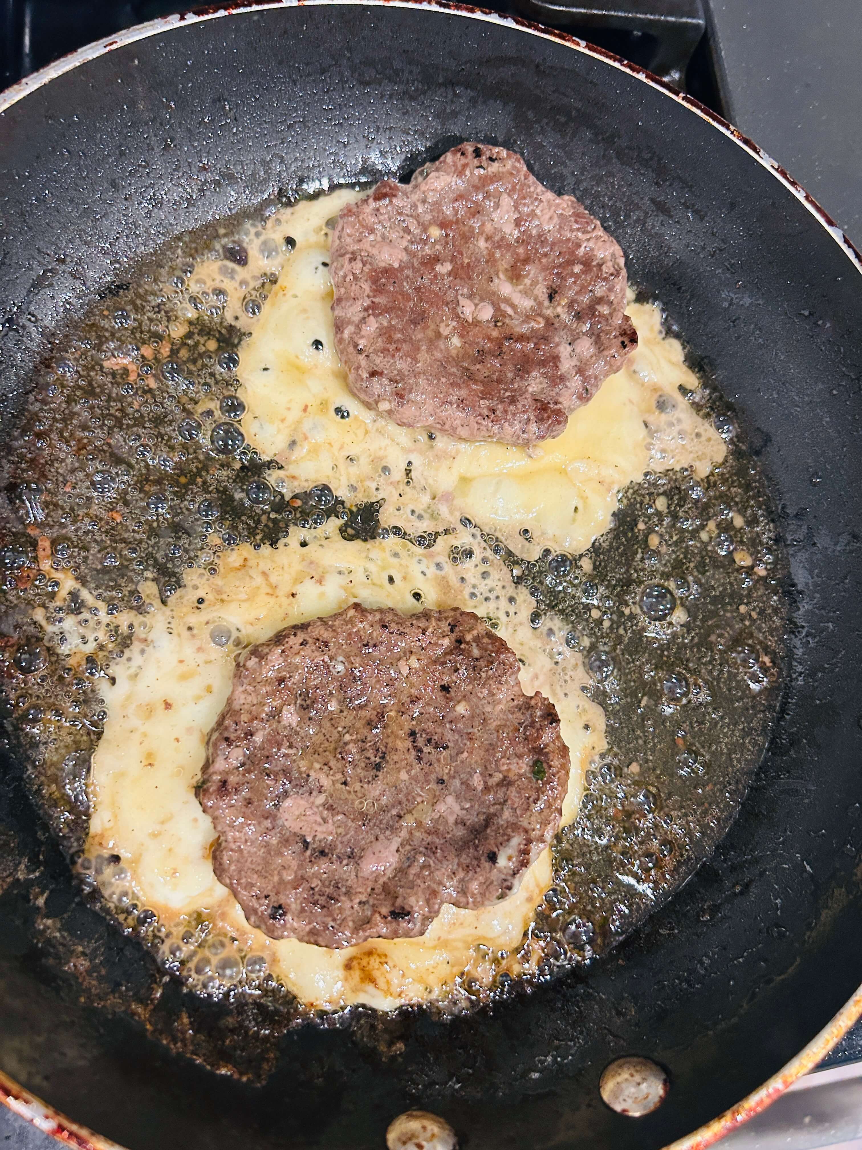 6. 소고기 햄버거 패티도 버터에 구워줍니다.