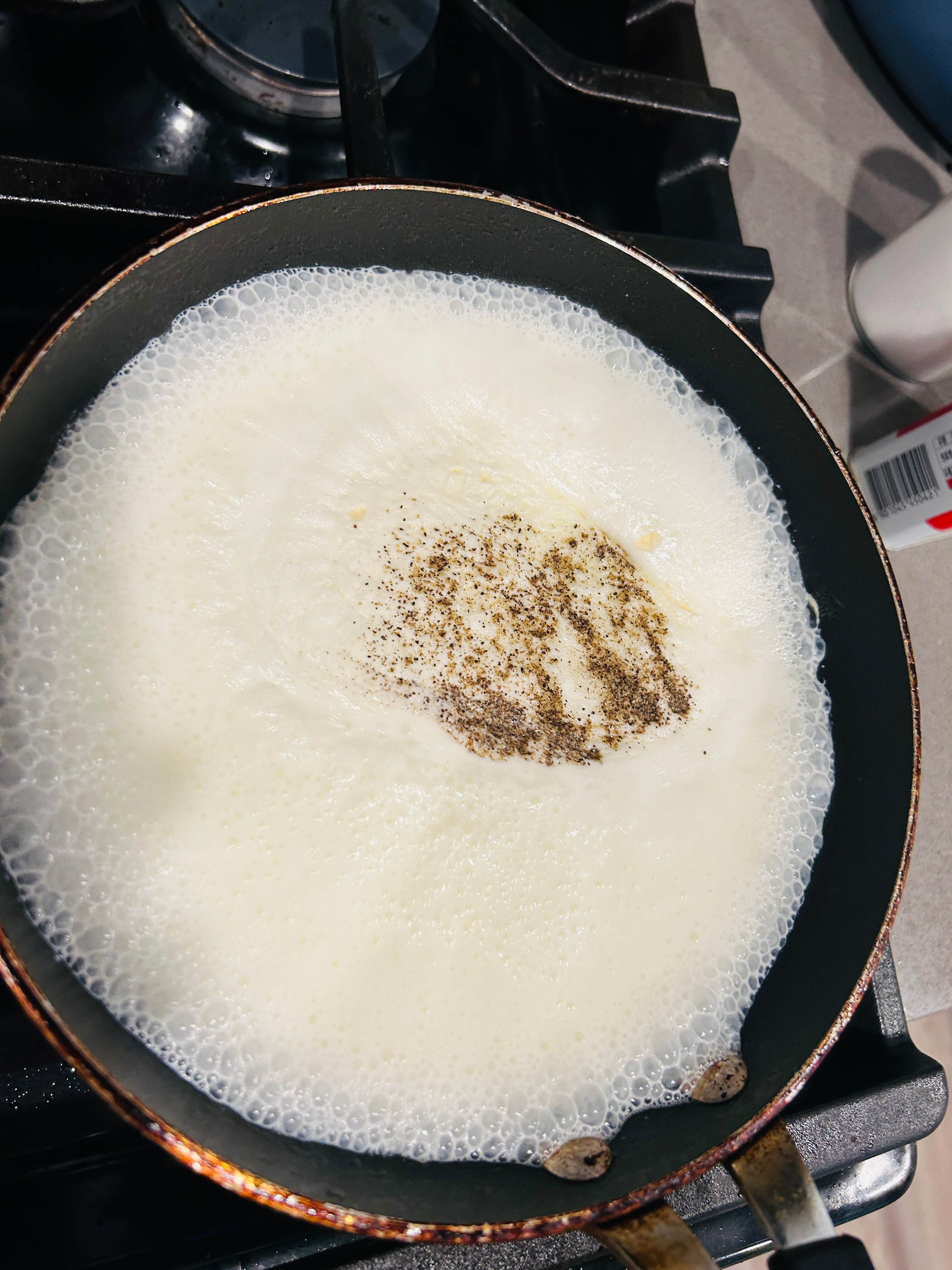 9. 생크림 일부를 같이 넣어줍니다. ( 우유: 생크림 = 1:0.5 )