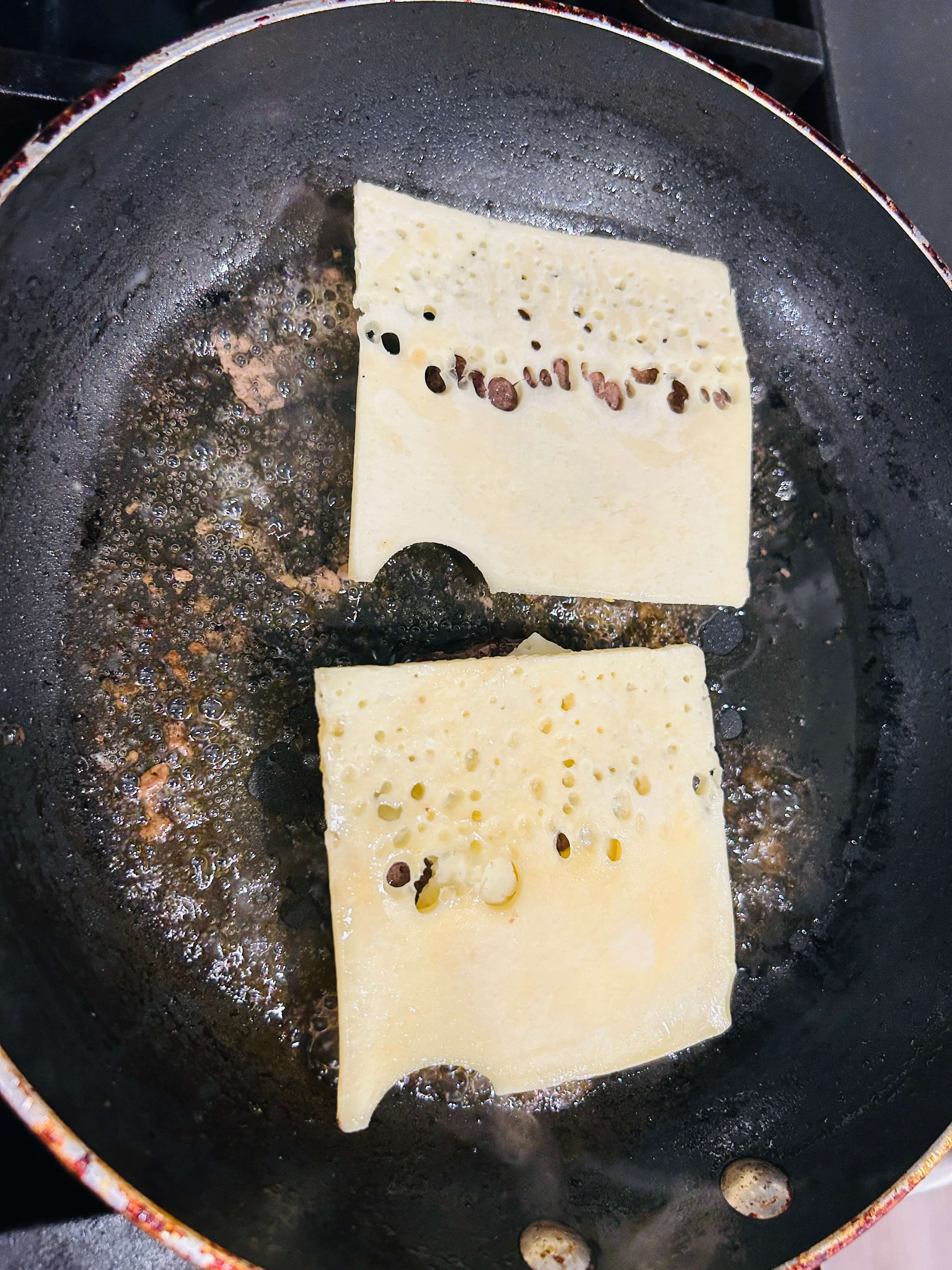 7. 패티위에 치즈를 올려 같이 구워줍니다.