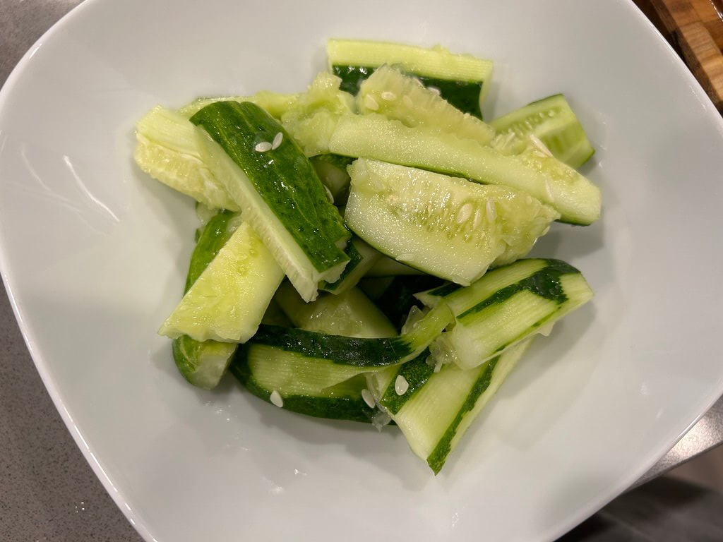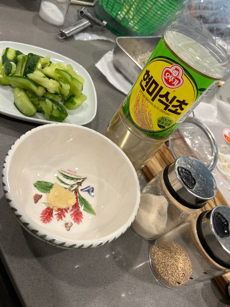 3. 오이를 그릇에 담아줍니다.