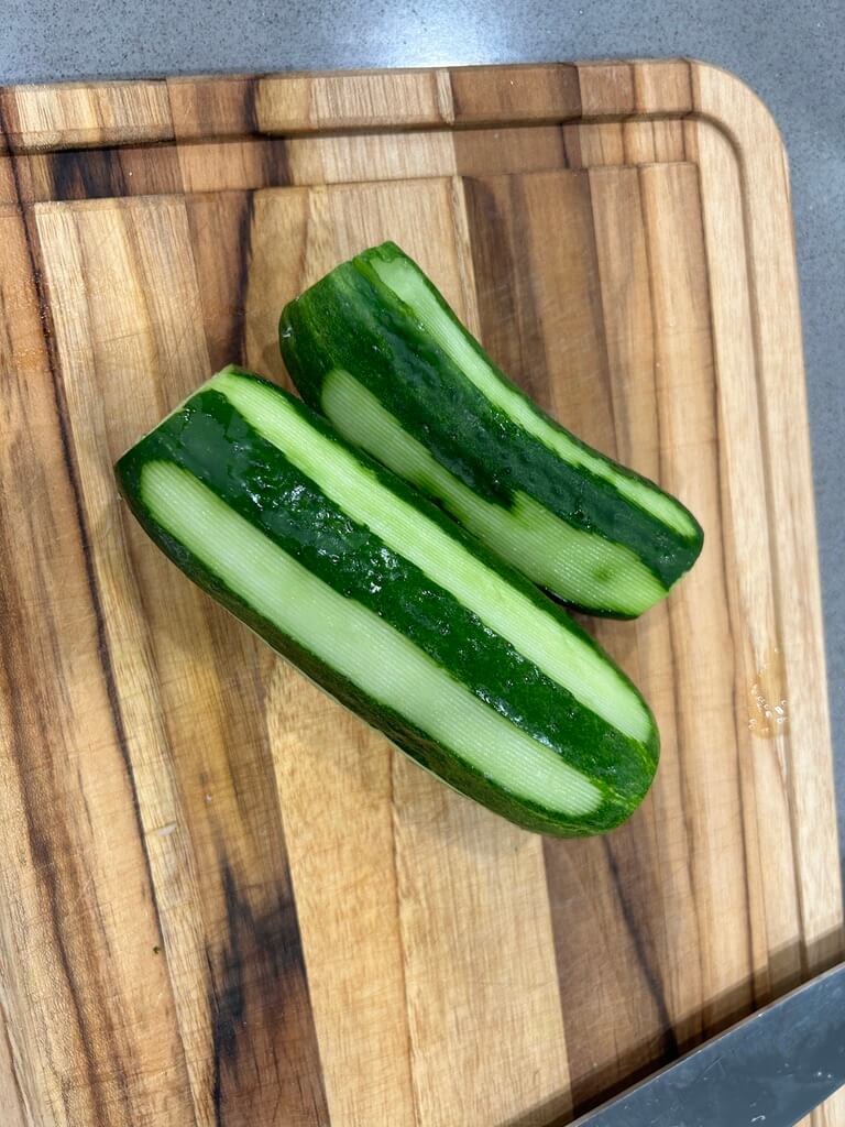 1. 오이를 잘 씻어준 뒤 4등분 해 주니다.