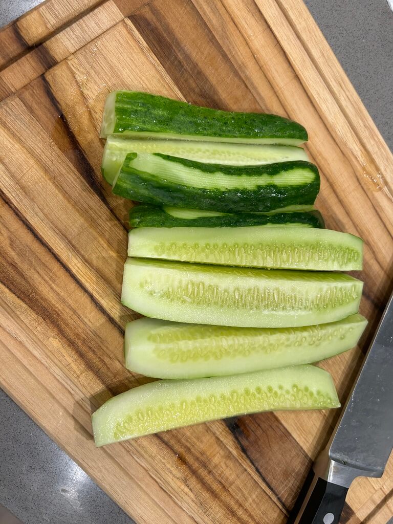 1. 오이를 잘 씻어준 뒤 4등분 해 주니다.