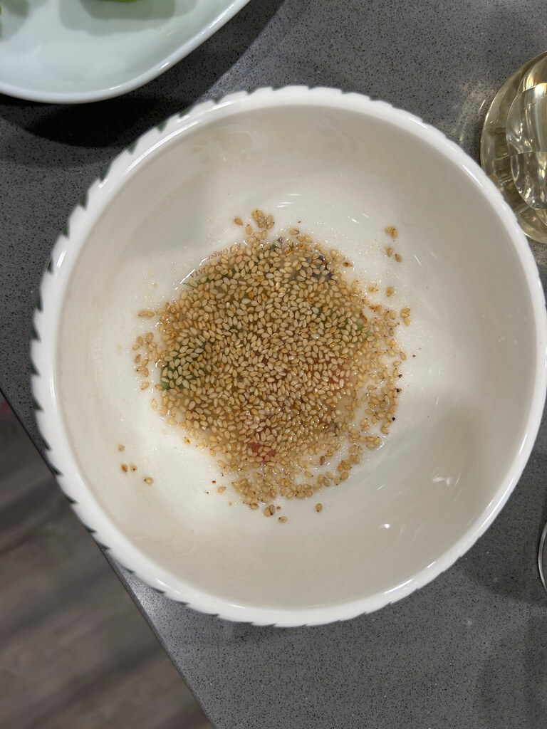4. 마늘 1숟갈, 식초 2 숟갈, 설탕 2 숟갈, 깨 1 숟갈을 넣어 소스를 준비해 줍니다.