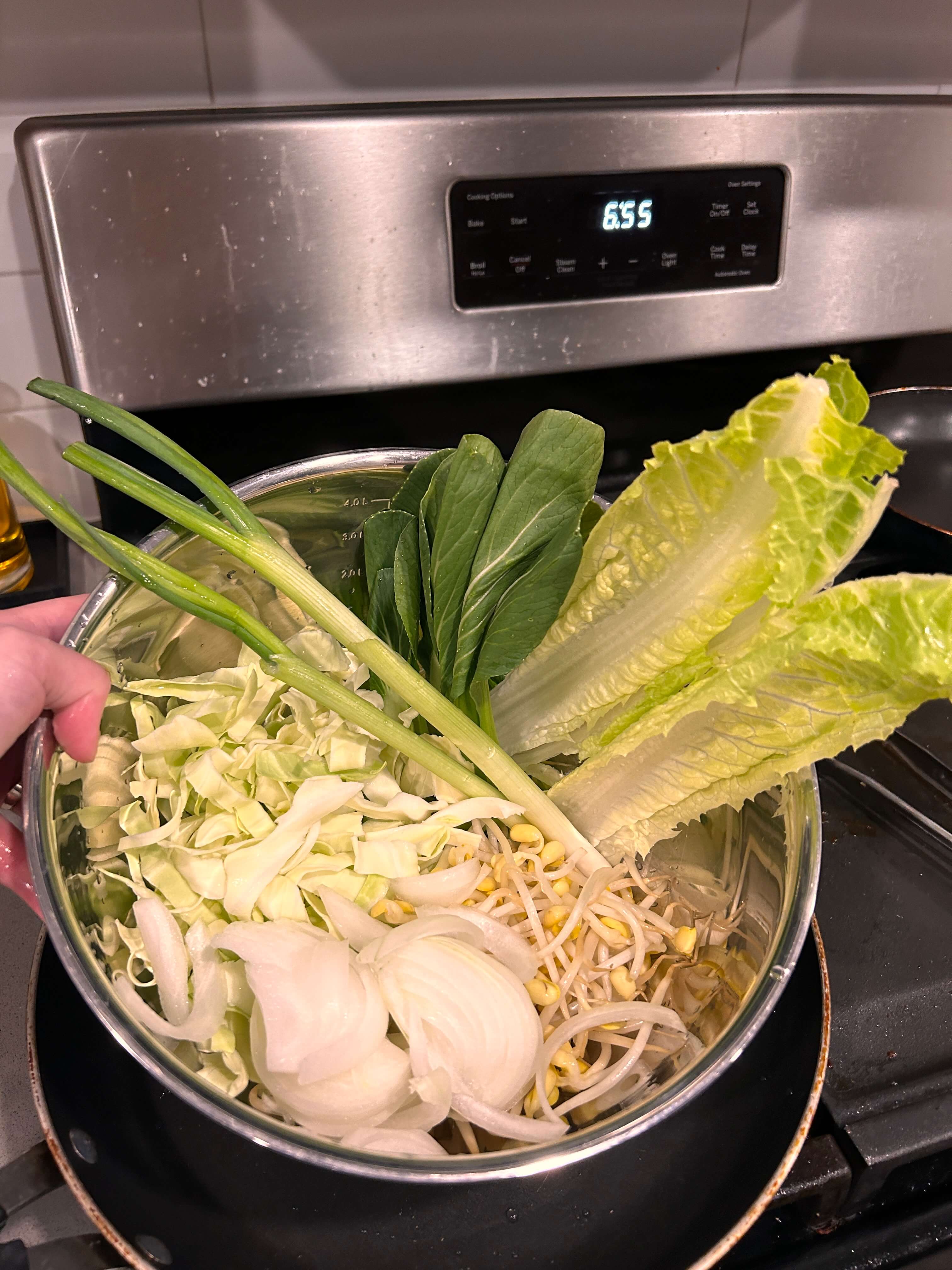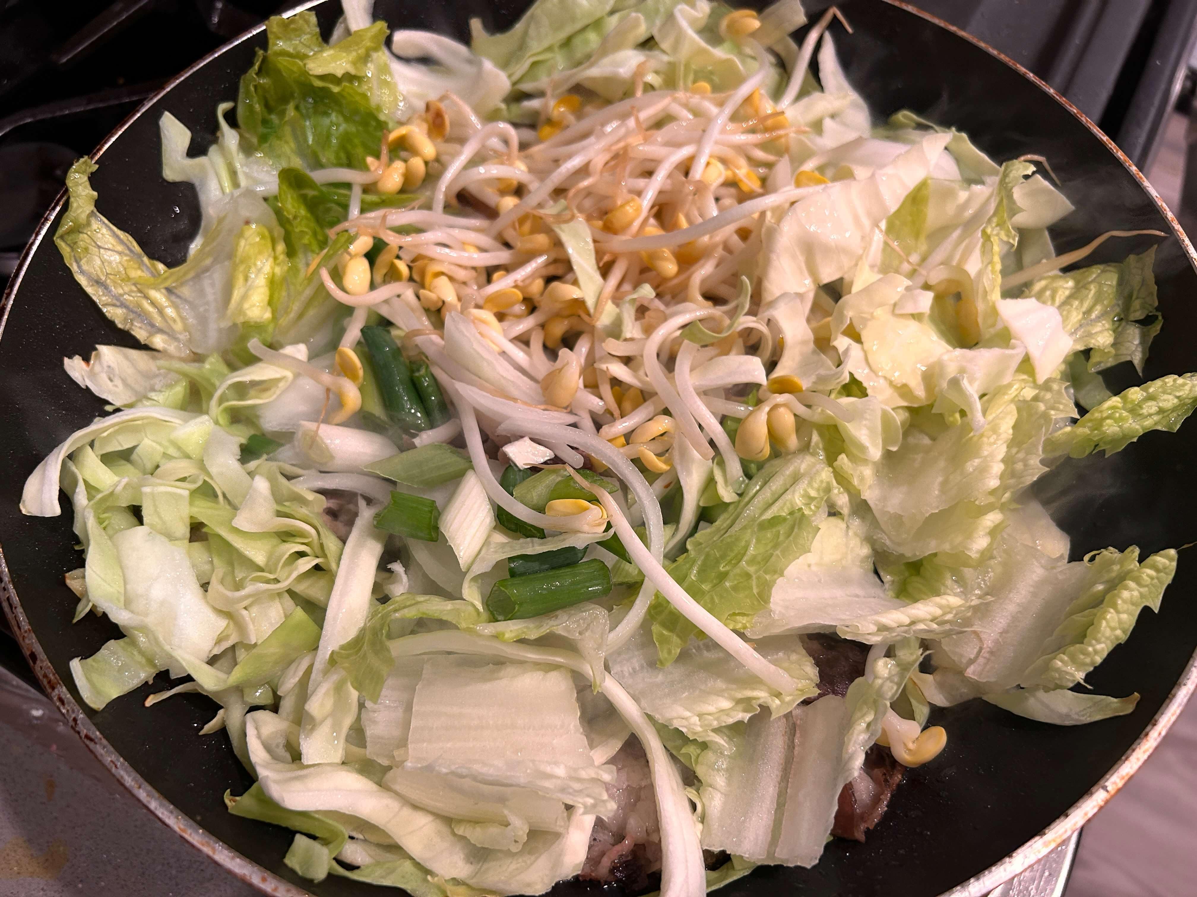 저는 배추, 파, 양파, 콩나물, 청경채를 준비하였습니다. 숙주가 들어가면 좋은데 냉장고에 없더라고요. 근데 숙주 넣지 않아도 충분히 맛있으니깐 집에 있는 어떤 채소를 넣으셔도 정말 상관없습니다.