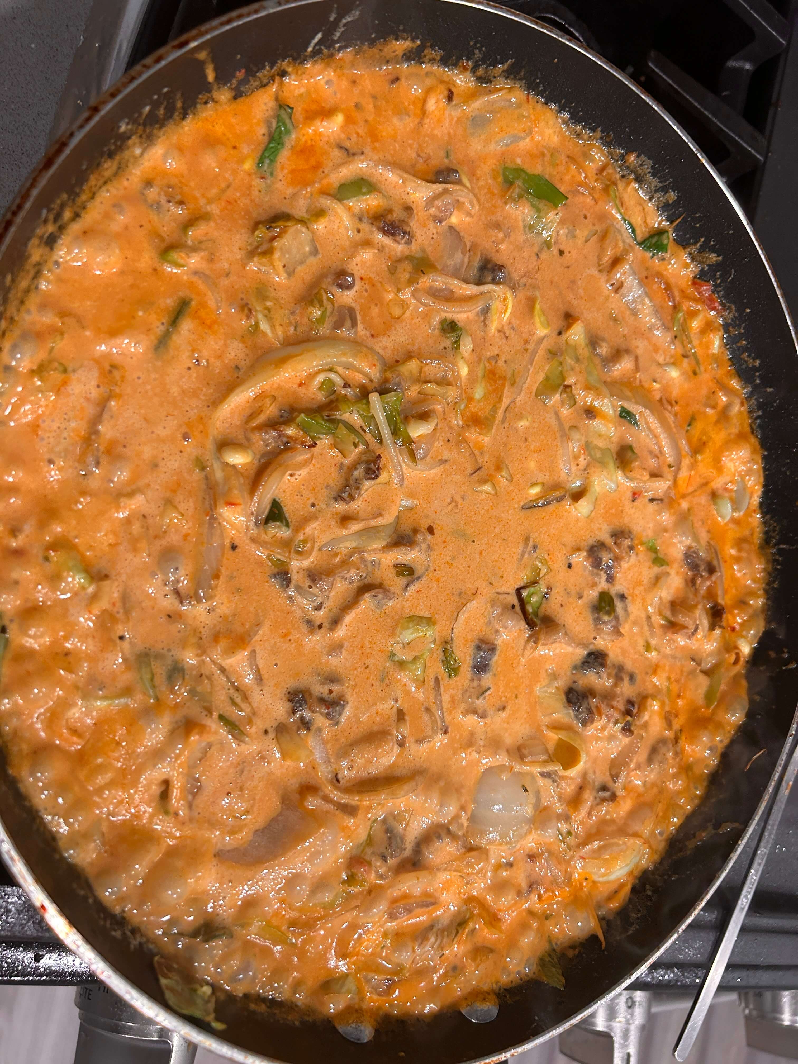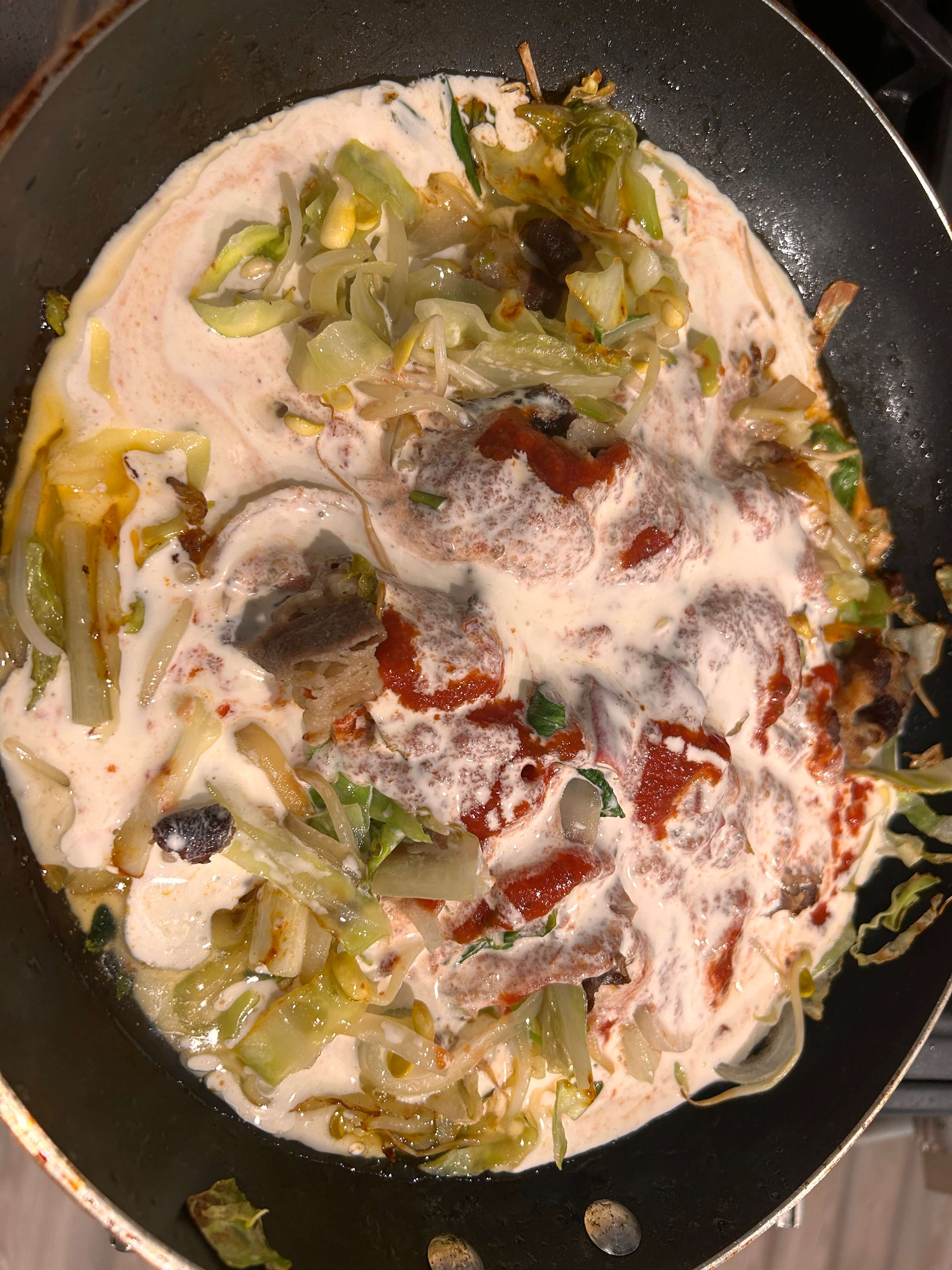 7. 생크림을 넣어 잘 볶아 줍니다.
