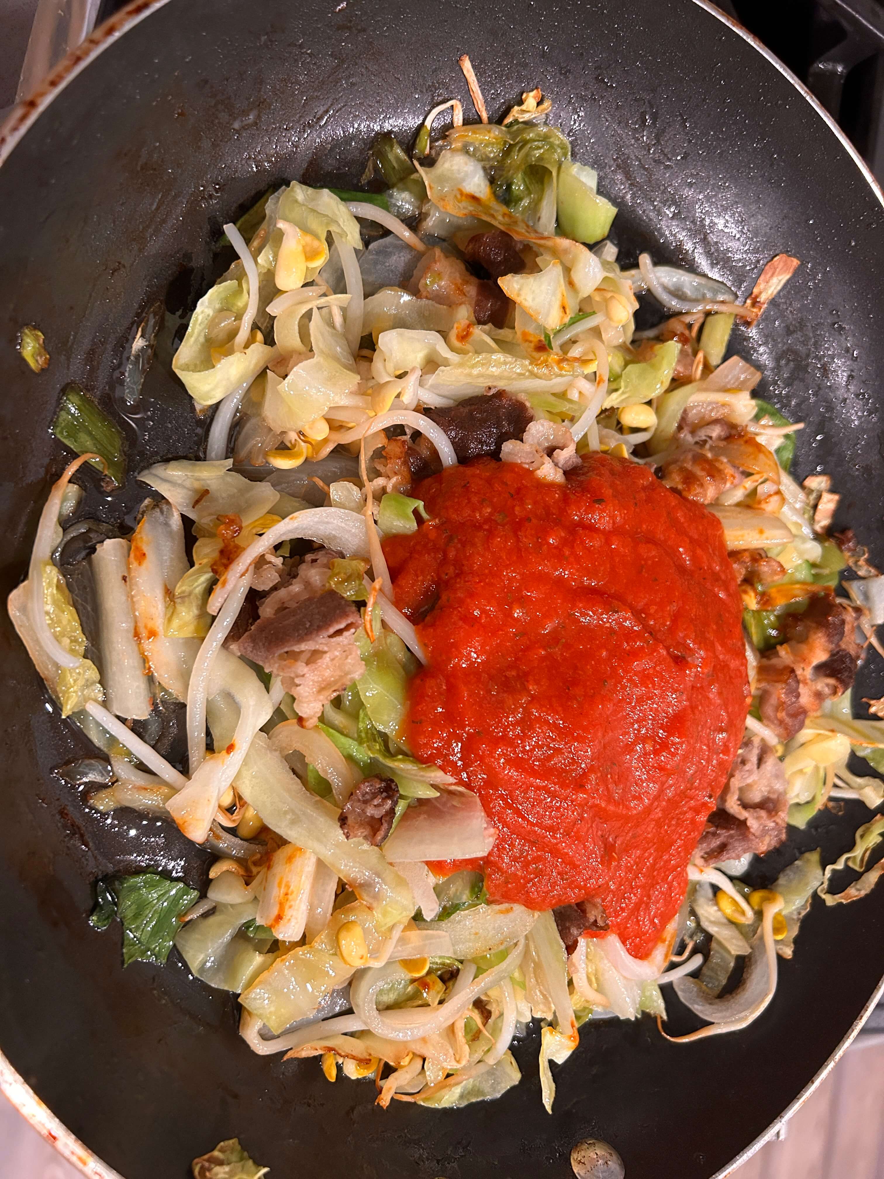 6. 토마토소스를 넣어줍니다.