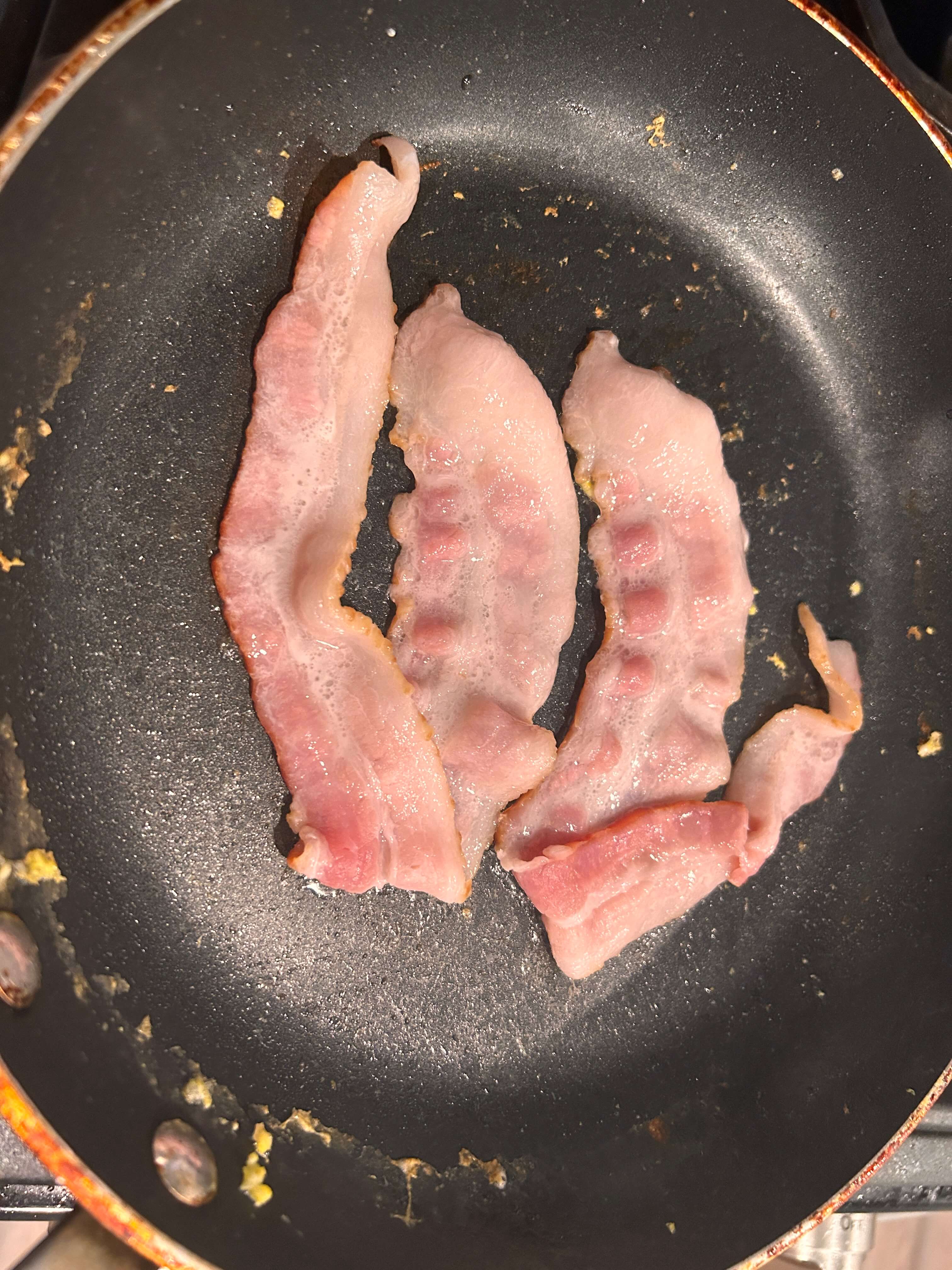 2. 베이컨을 구워 줍니다. 선호하는 굽기로. (저는 바삭한 것으로)