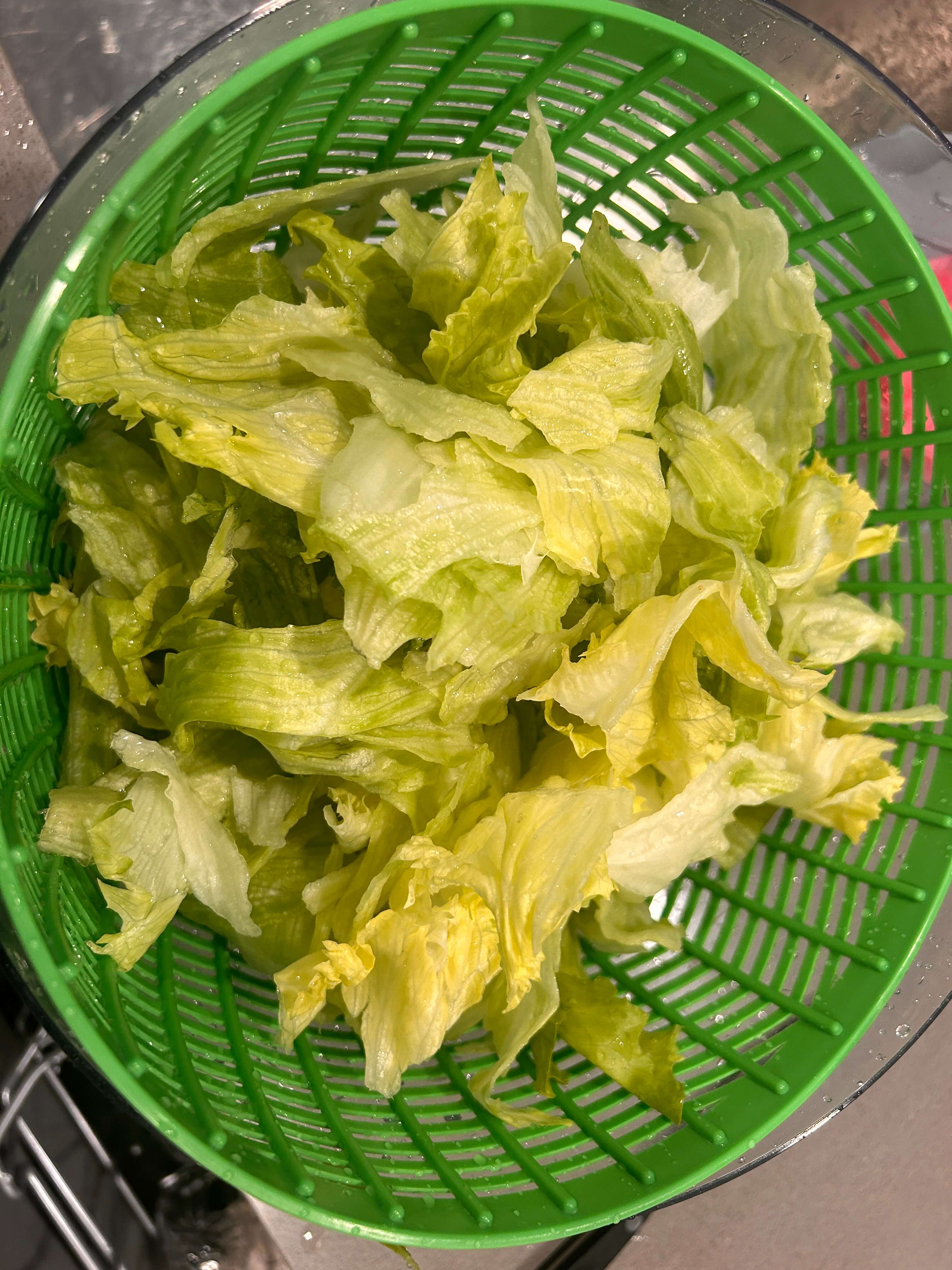 3. 양상추를 씻어 물기를 제거해 줍니다.