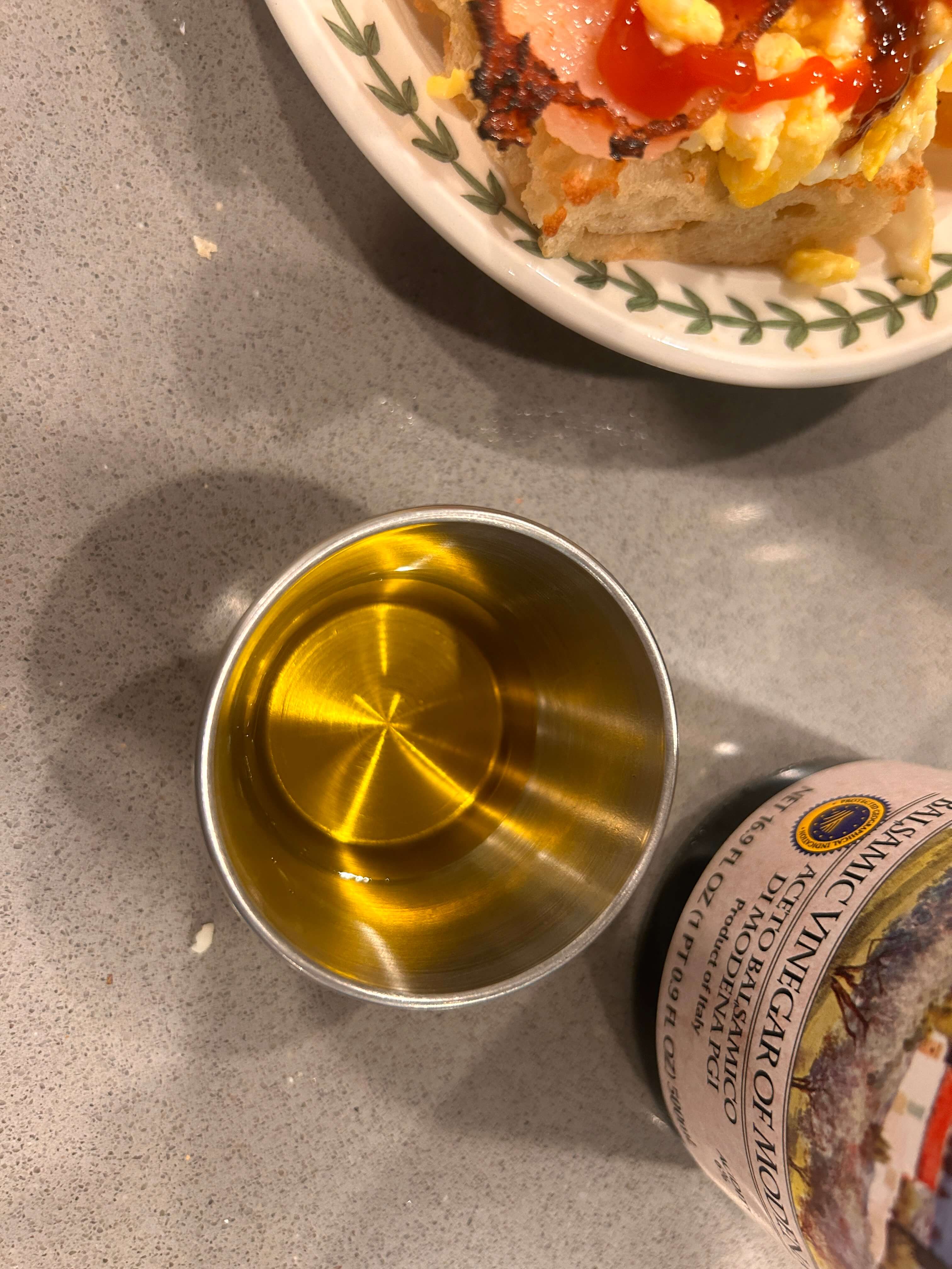 10. 자투리 치아바타랑 먹을 소스로 올리브유와 발사믹을 섞어 준비해 줍니다.