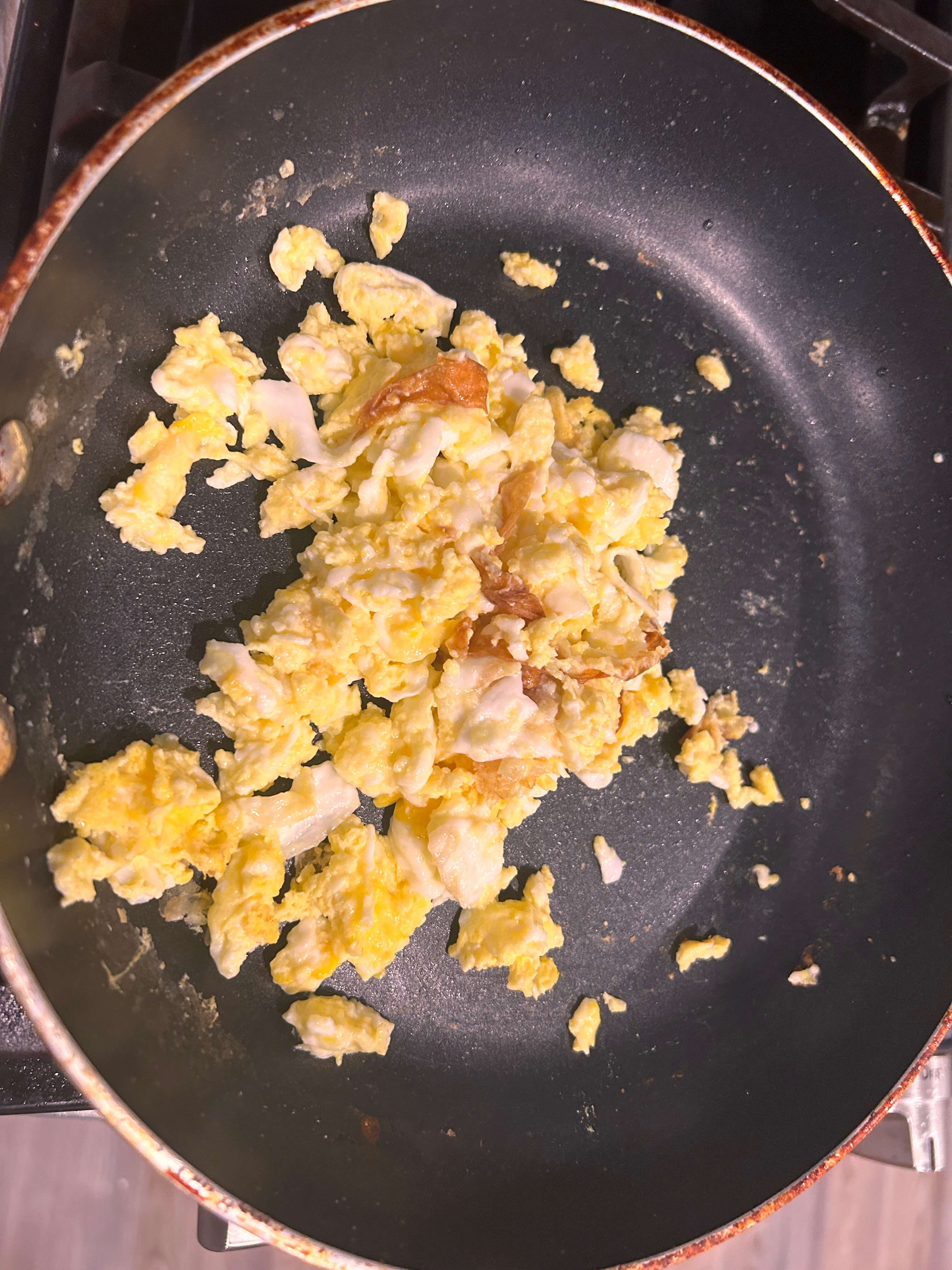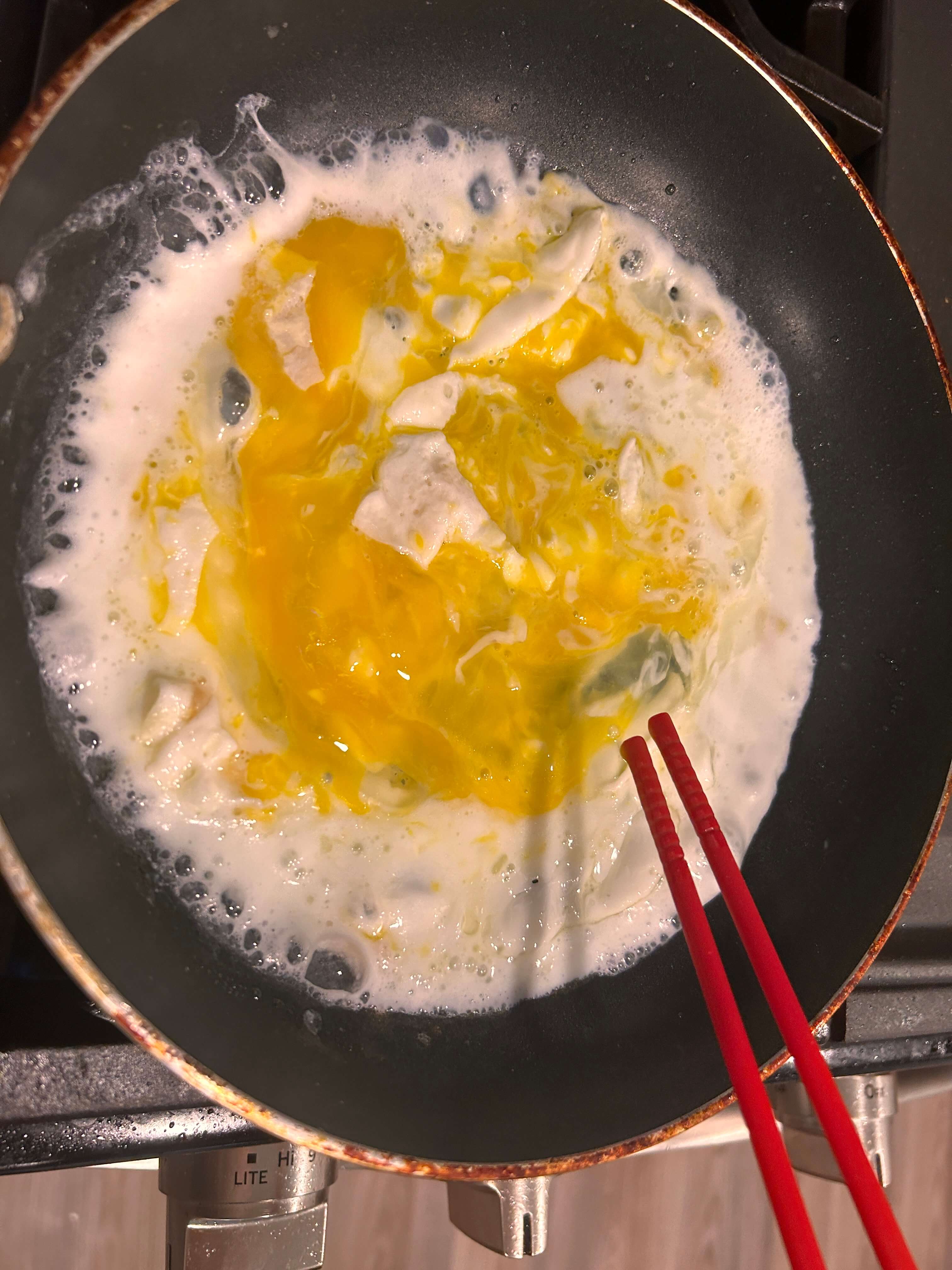 1. 달군 프라이팬에 기름을 두르고 계란을 스크램블로 만들어줍니다.