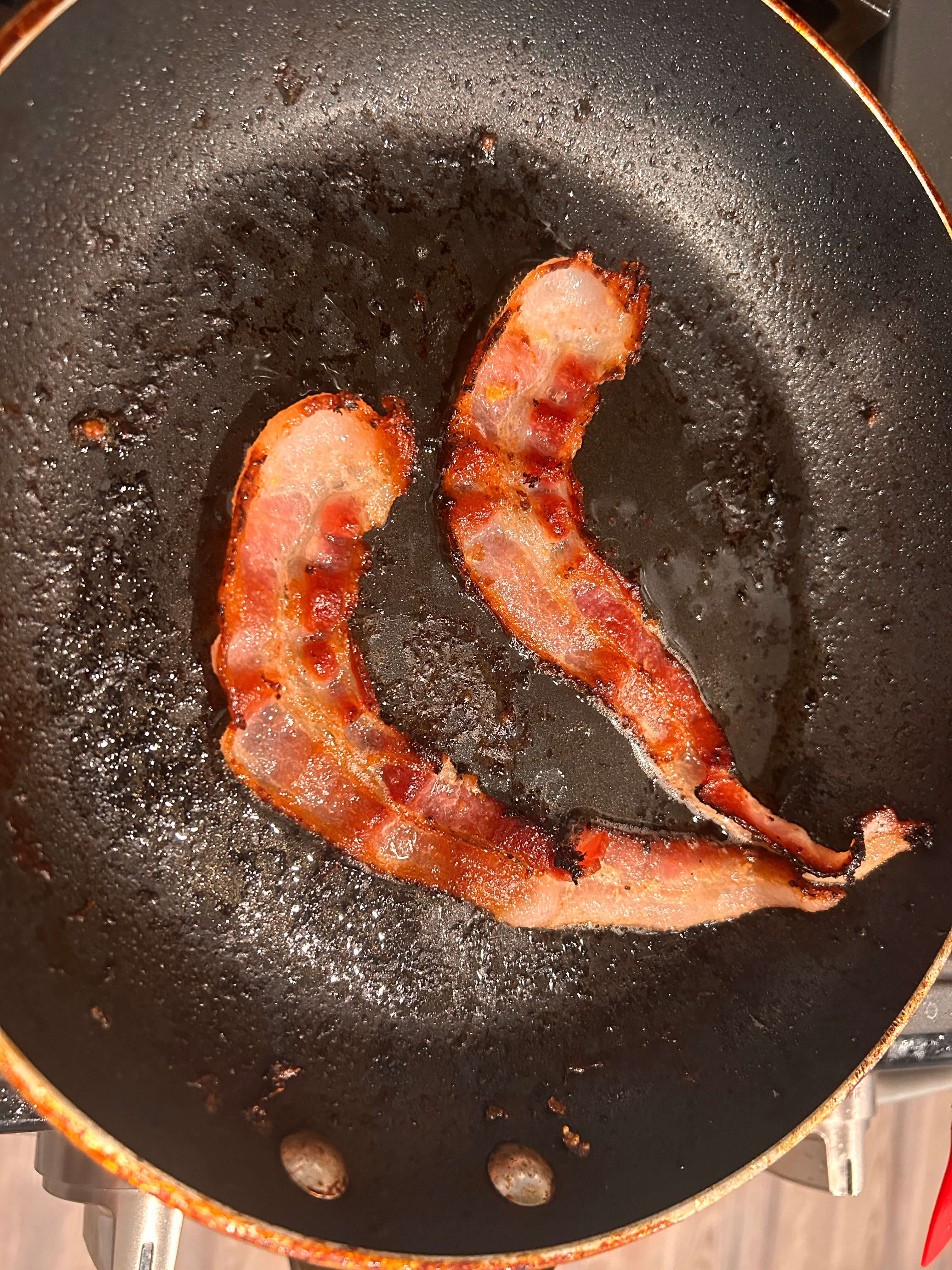 2. 베이컨을 구워 줍니다. 선호하는 굽기로. (저는 바삭한 것으로)
