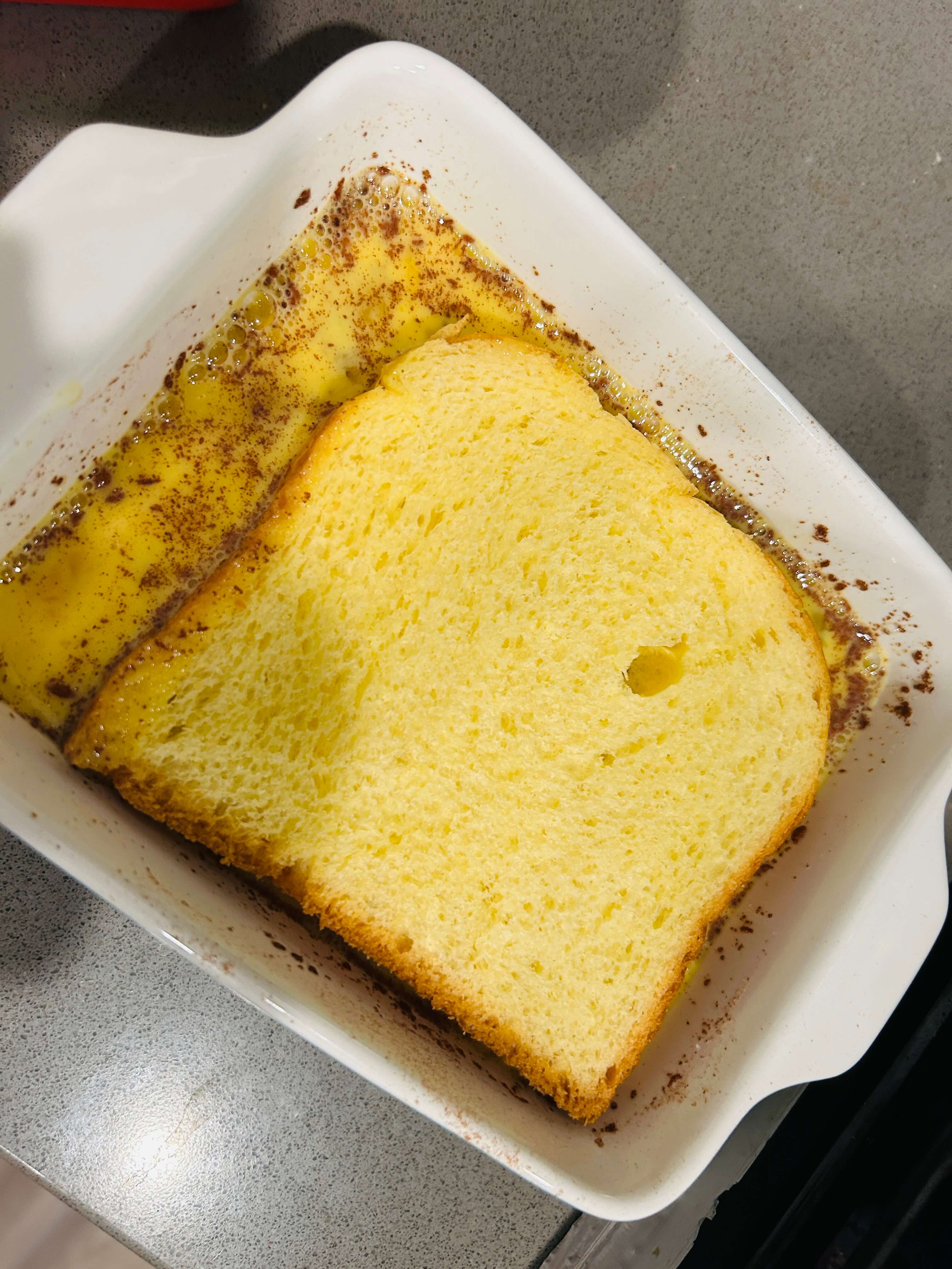 3. 준비된 게란물에 식빵을 앞뒤로 흠뻑 적셔줍니다.
