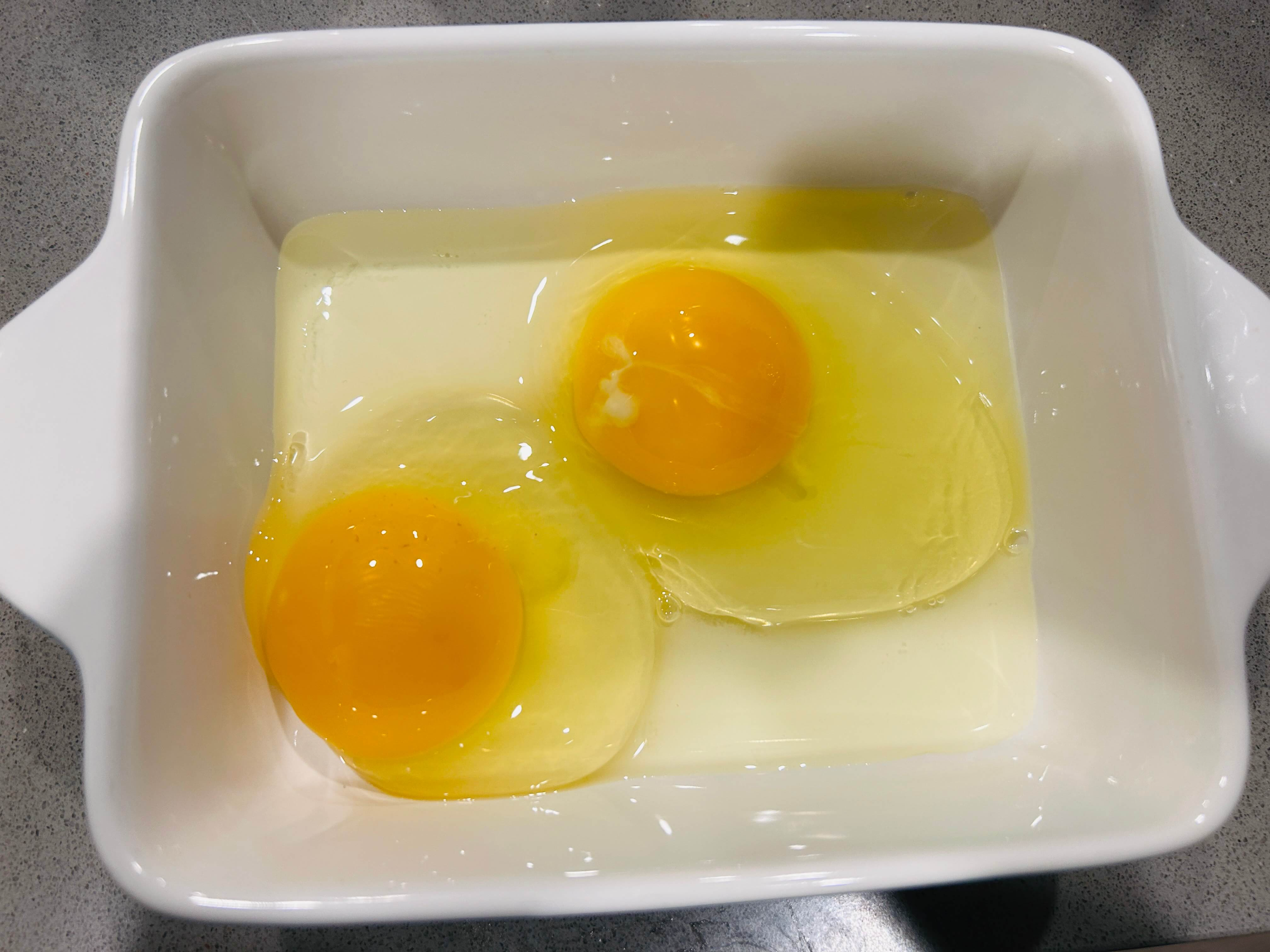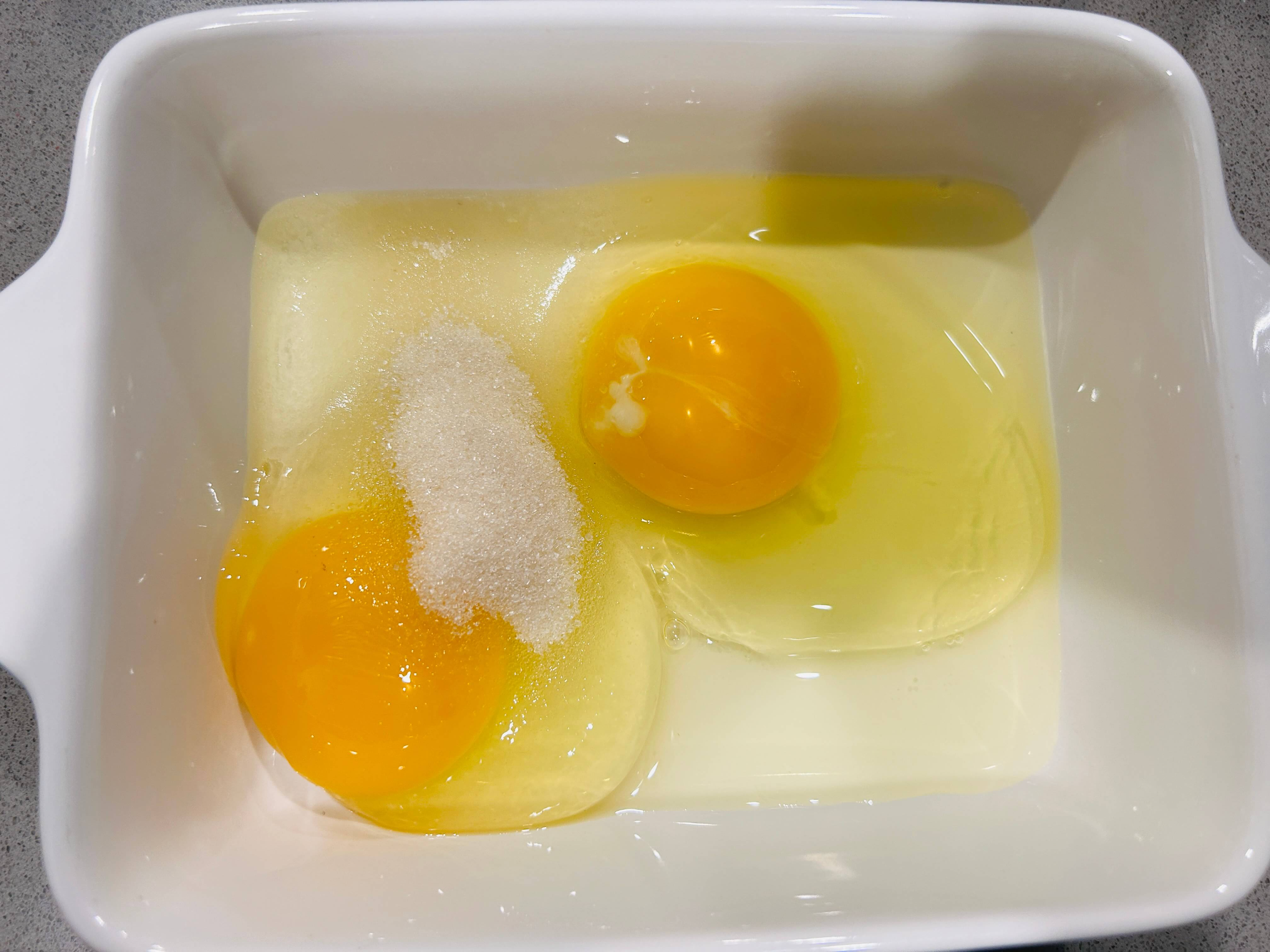 2. 그릇에 계란 두 개, 설탕, 시나몬가루, 우유를 넣고 잘 섞어줍니다.