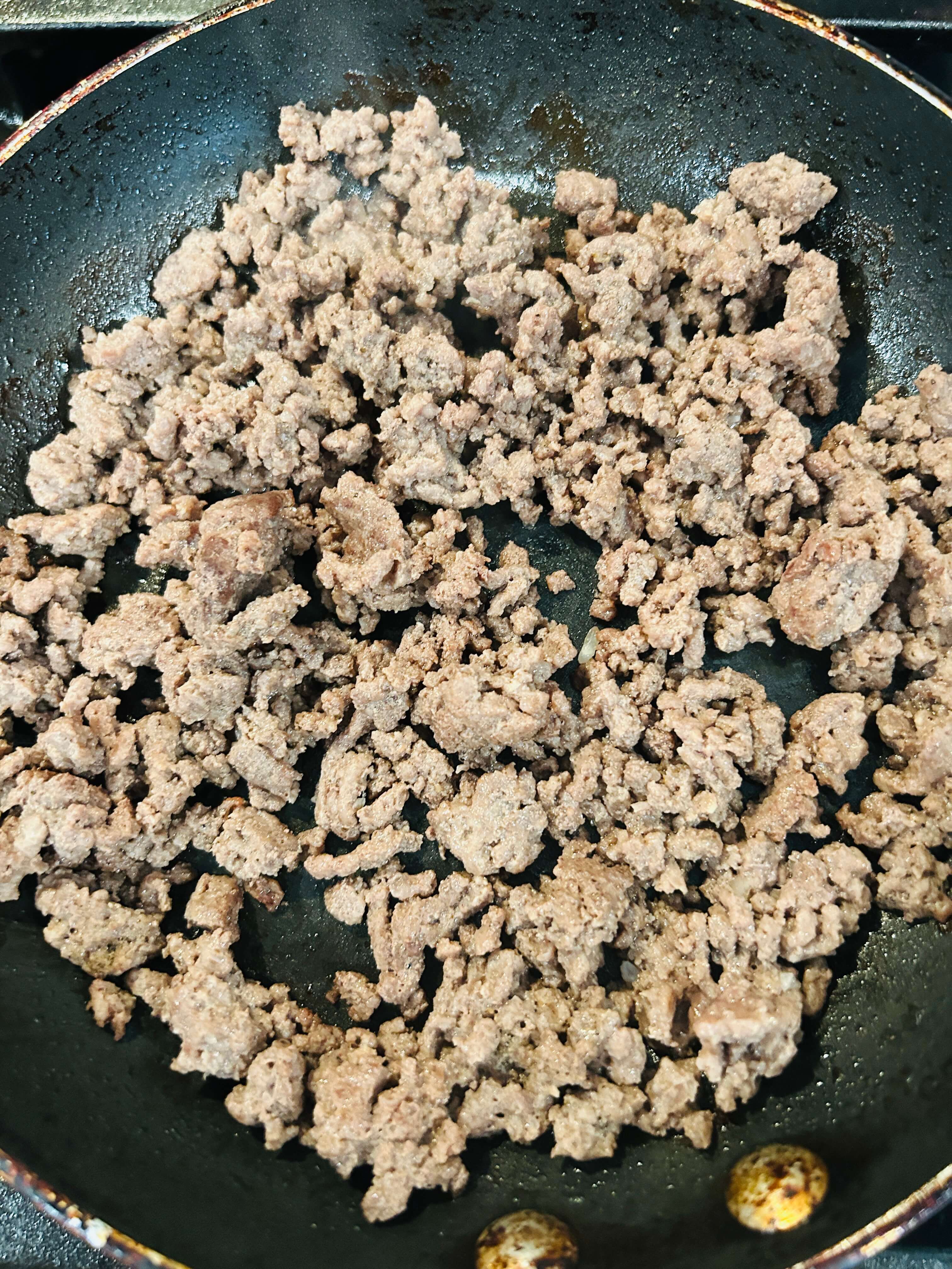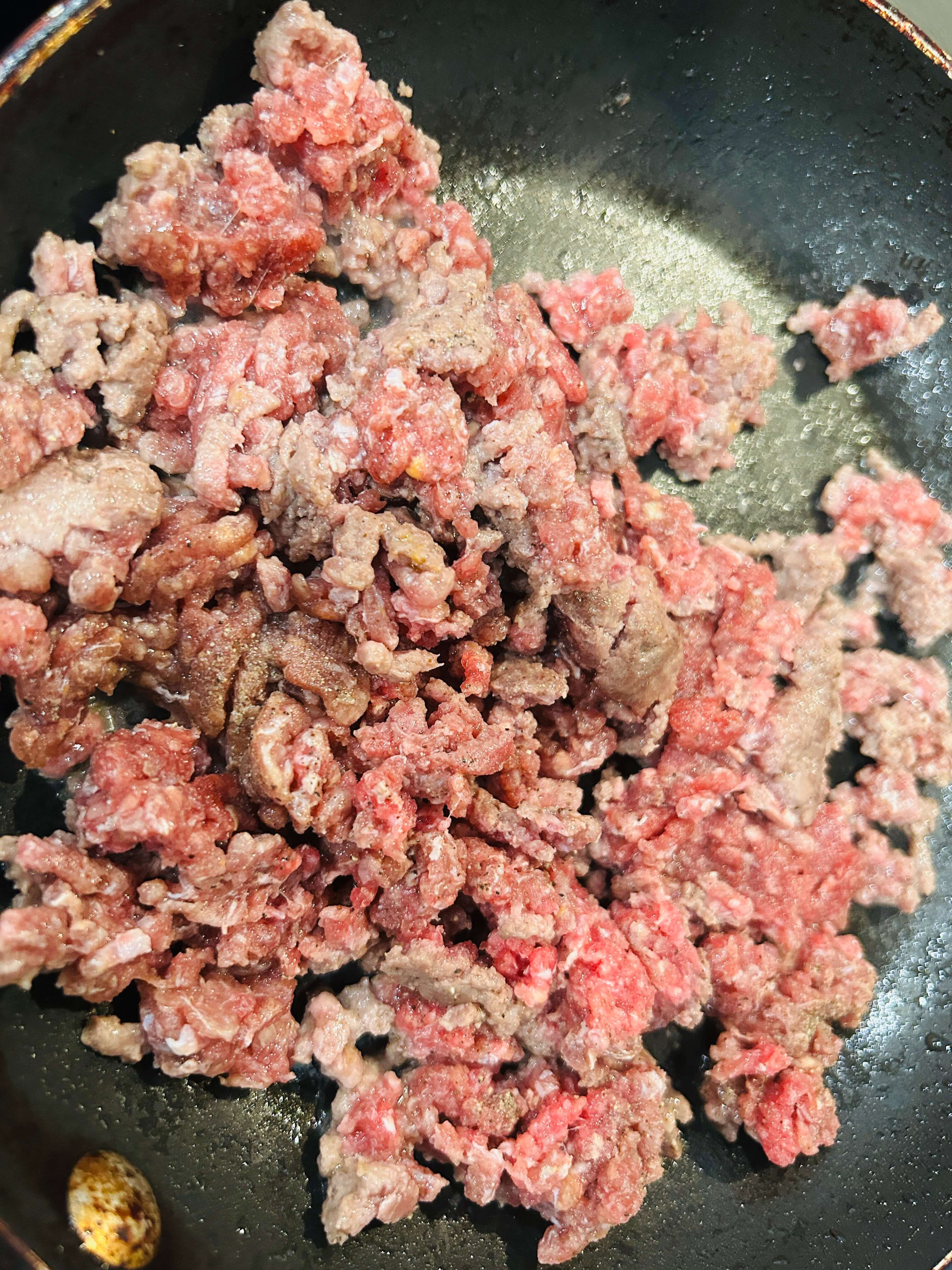 9. 다짐육을 프라이팬에 구워줍니다.