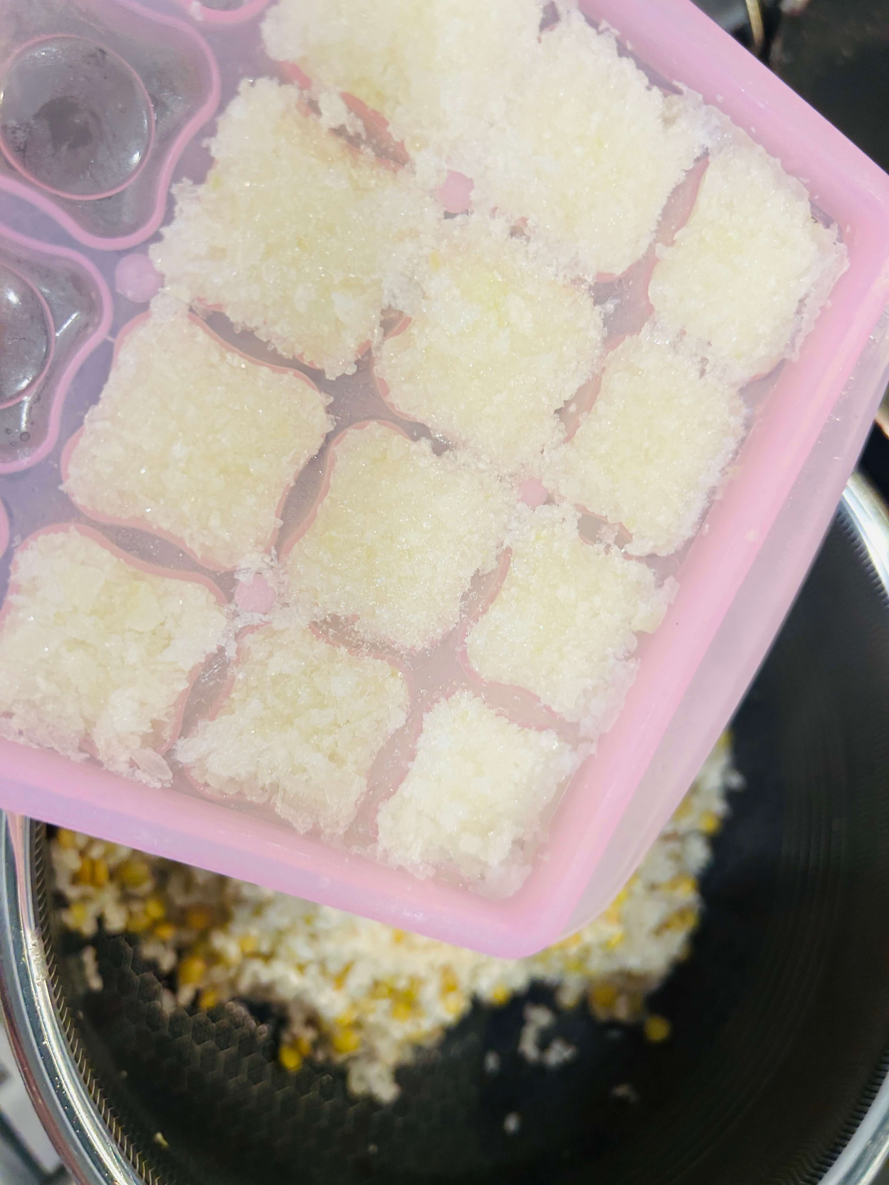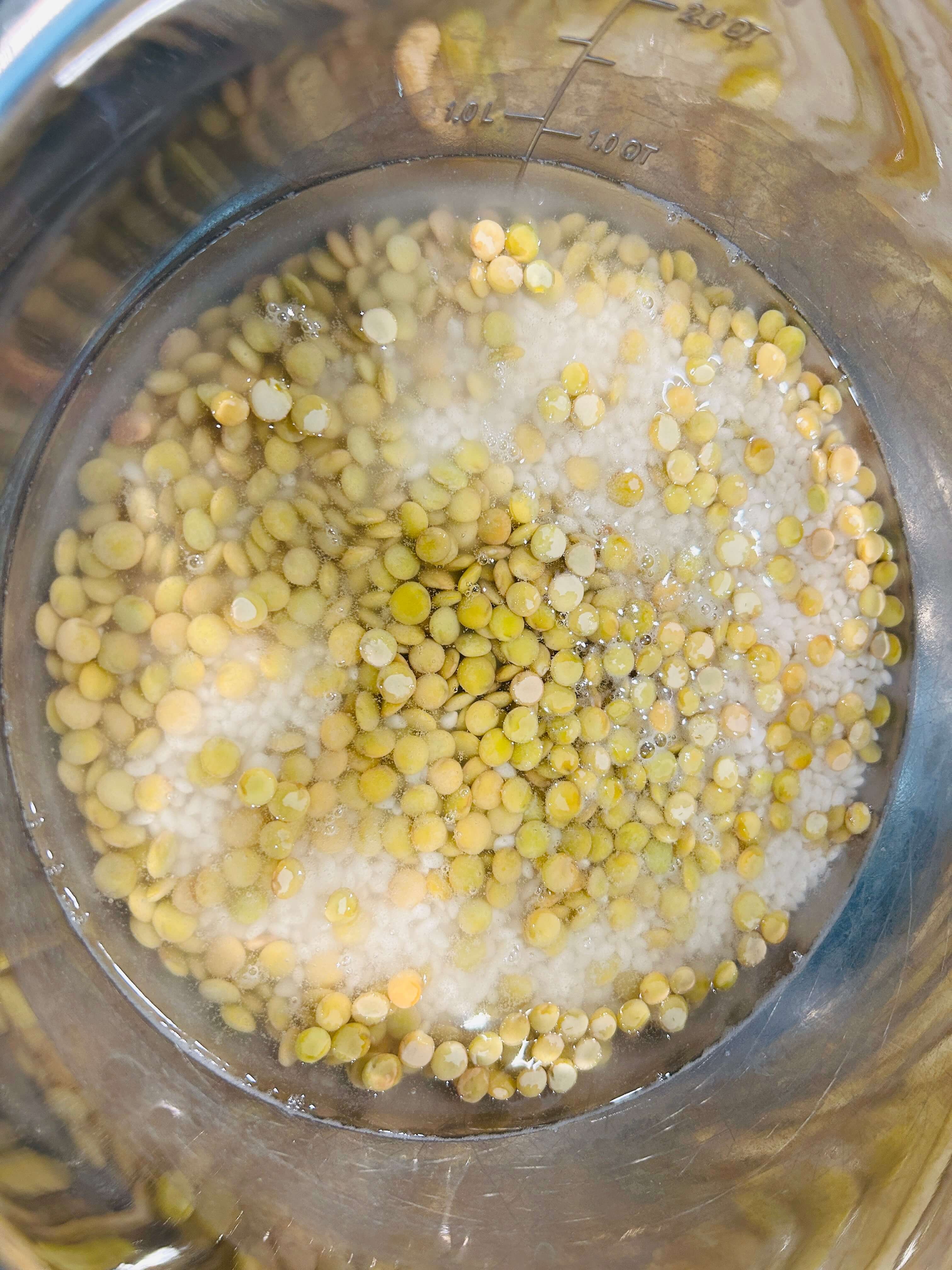11. 물이 살짝 쌀위에 보일 정도로 넣어주고 뚜껑을 닫은 뒤 중불에서 20분 익혀줍니다.