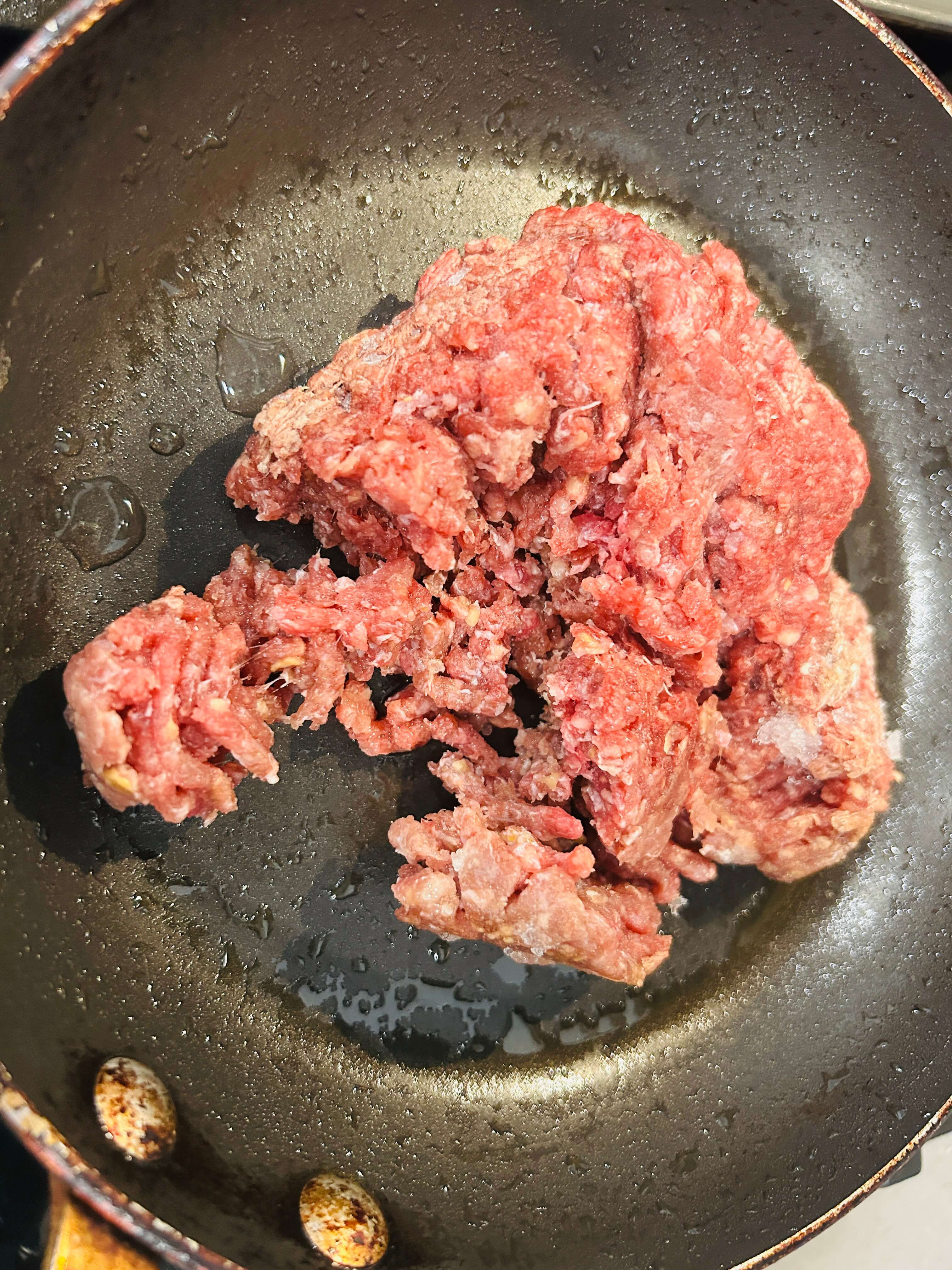 9. 다짐육을 프라이팬에 구워줍니다.
