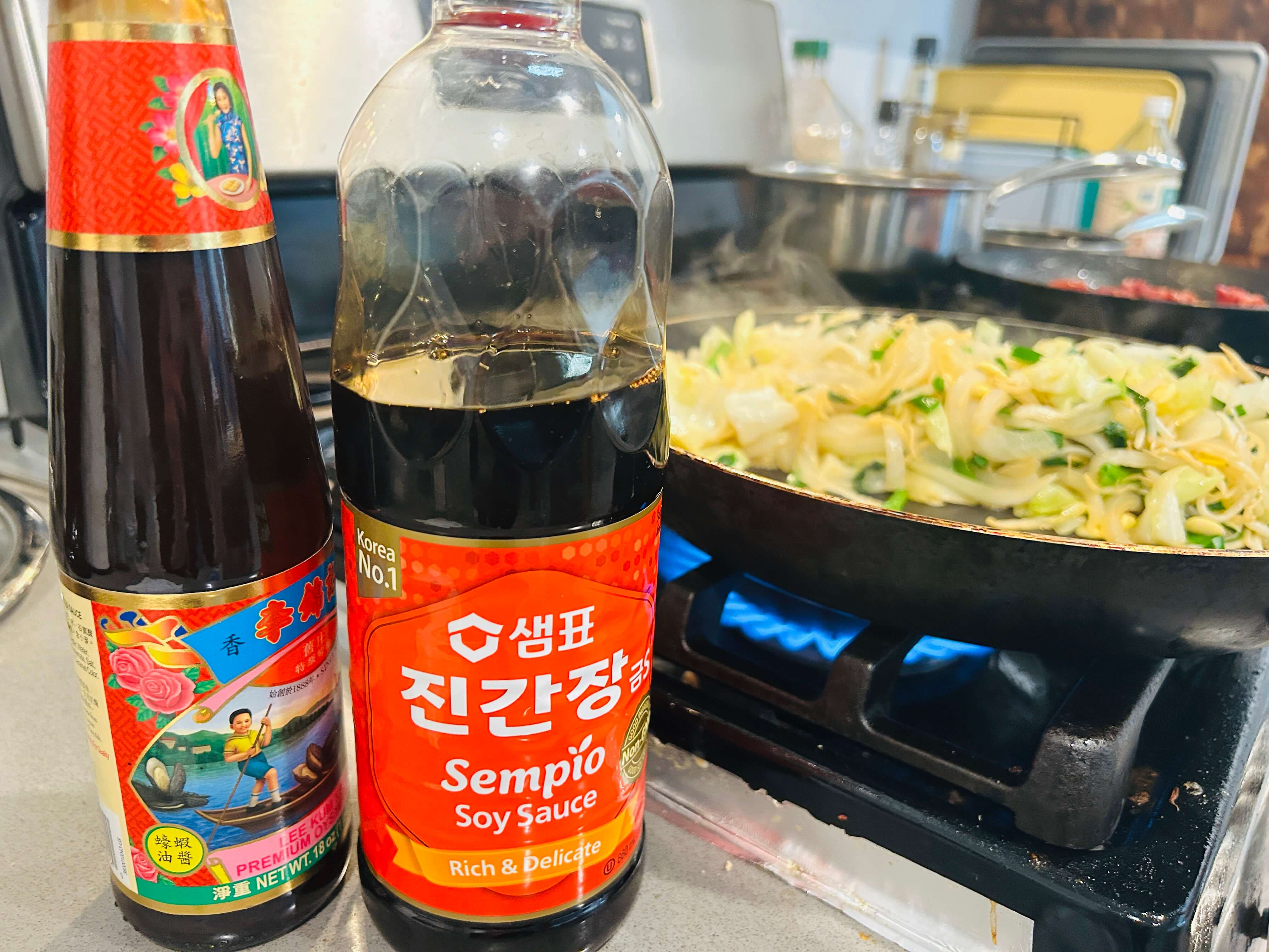11. 굴소스 한숟갈을 추가로 넣어 야채들을 잘 볶아줍니다.
