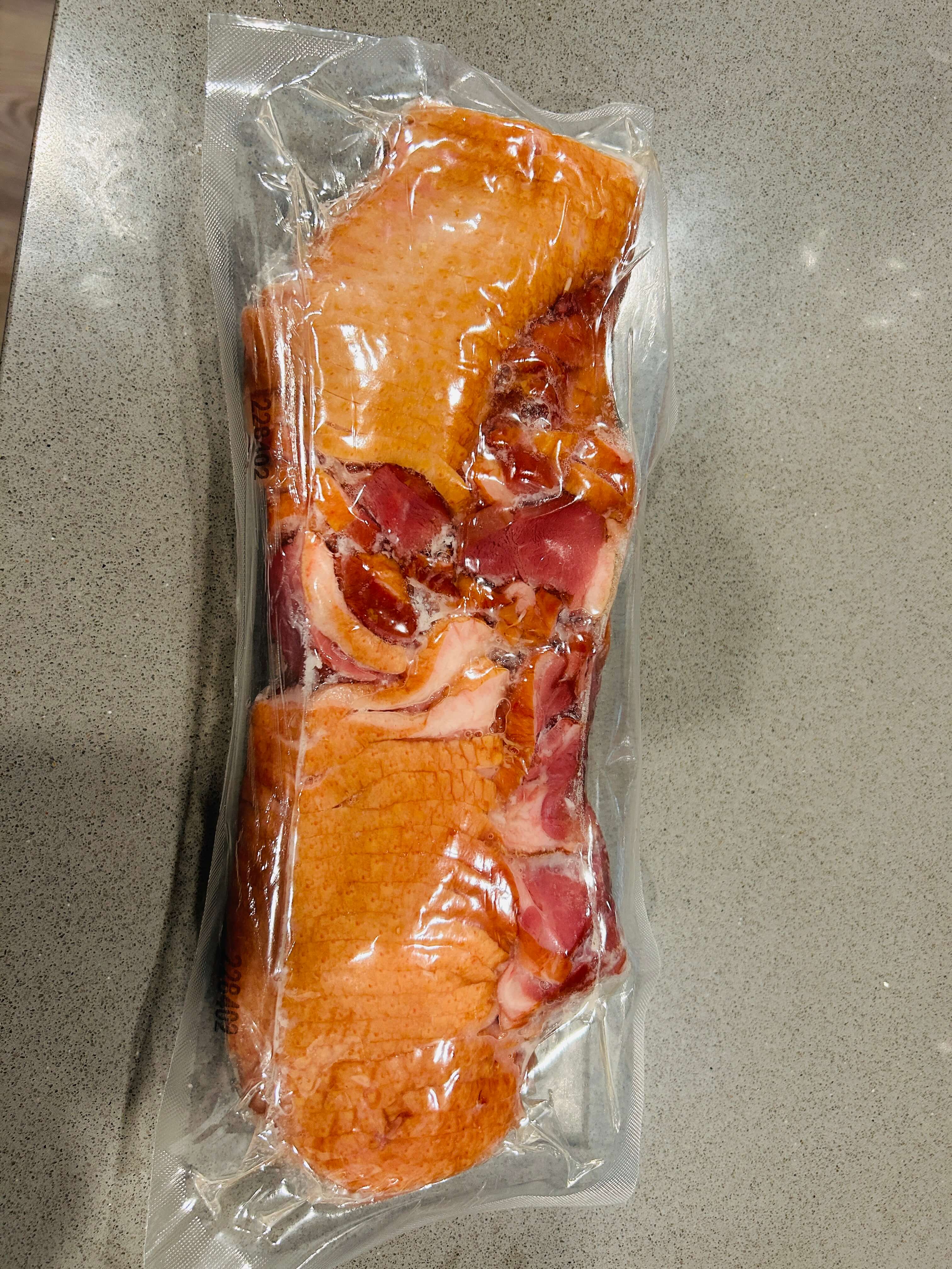 5. 구워진 훈제오리는 한쪽에 담아둡니다.