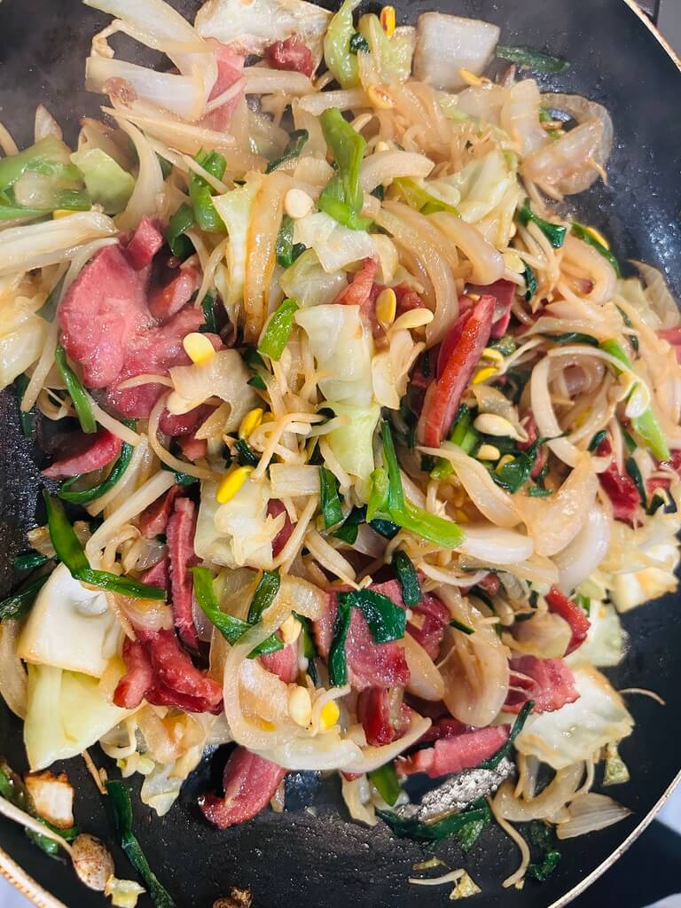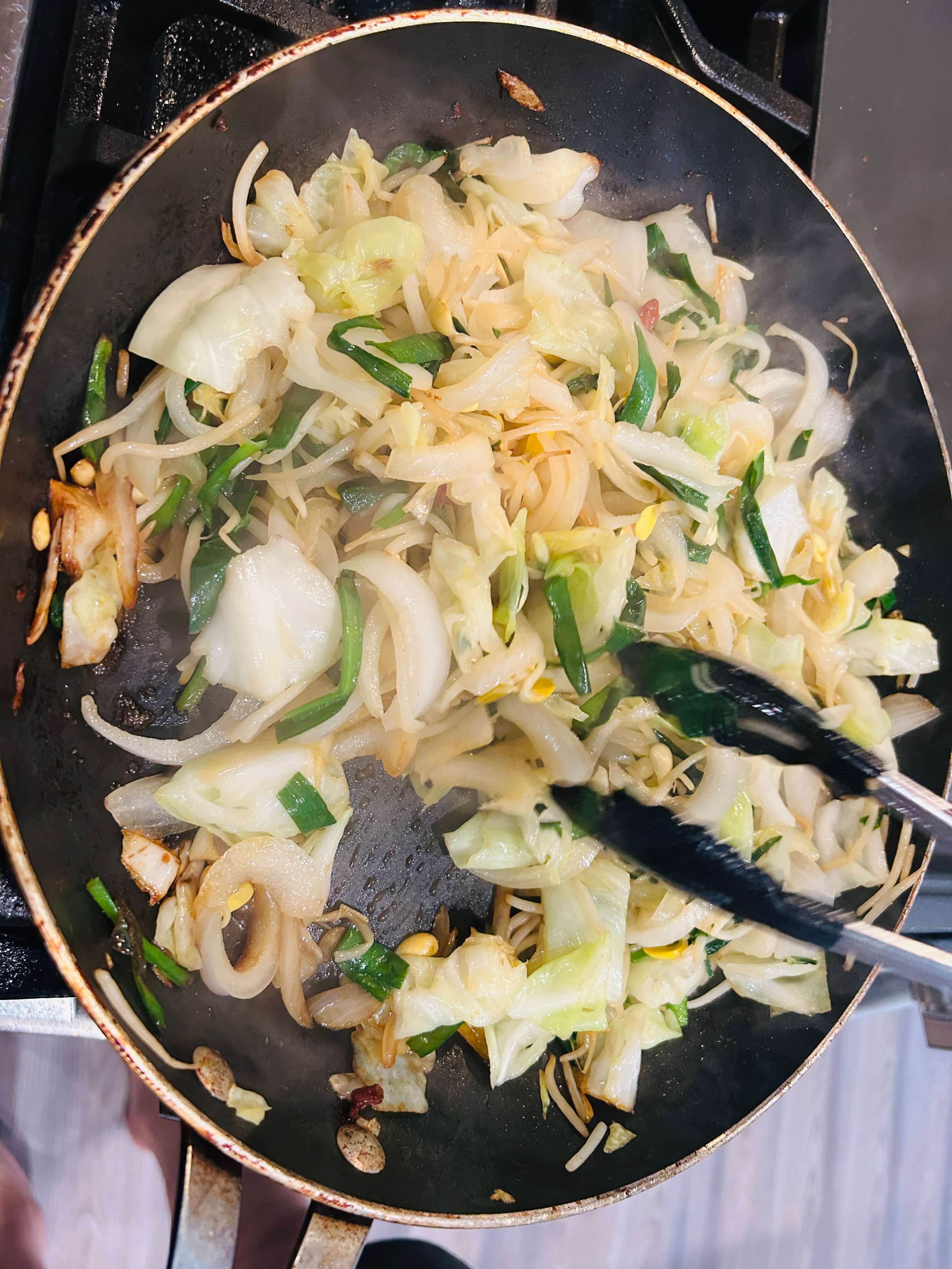 7. 채소들의 숨이 죽을 때까지 볶아줍니다.