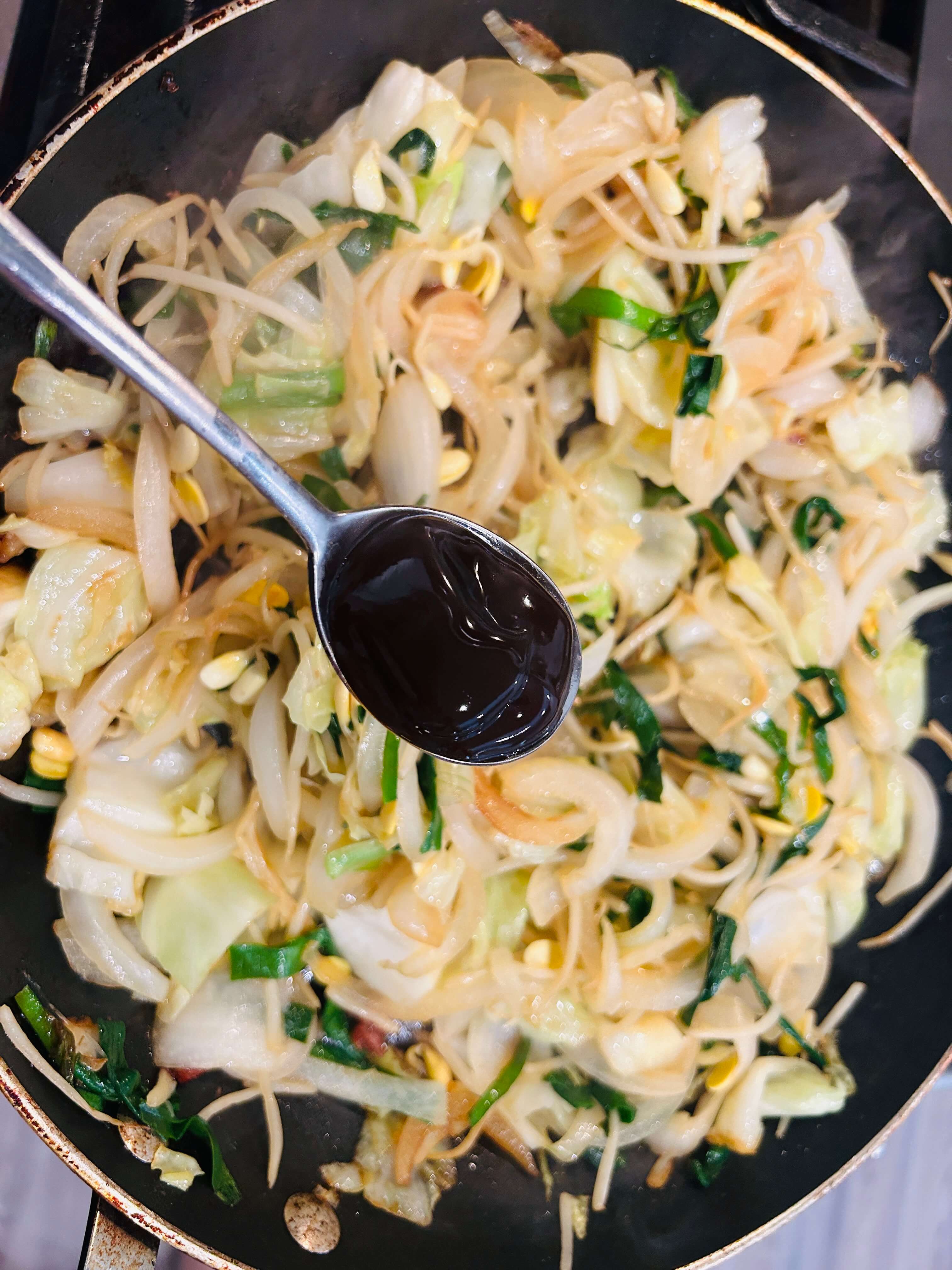 11. 굴소스 한 숟갈을 추가로 넣어 야채들을 잘 볶아줍니다.