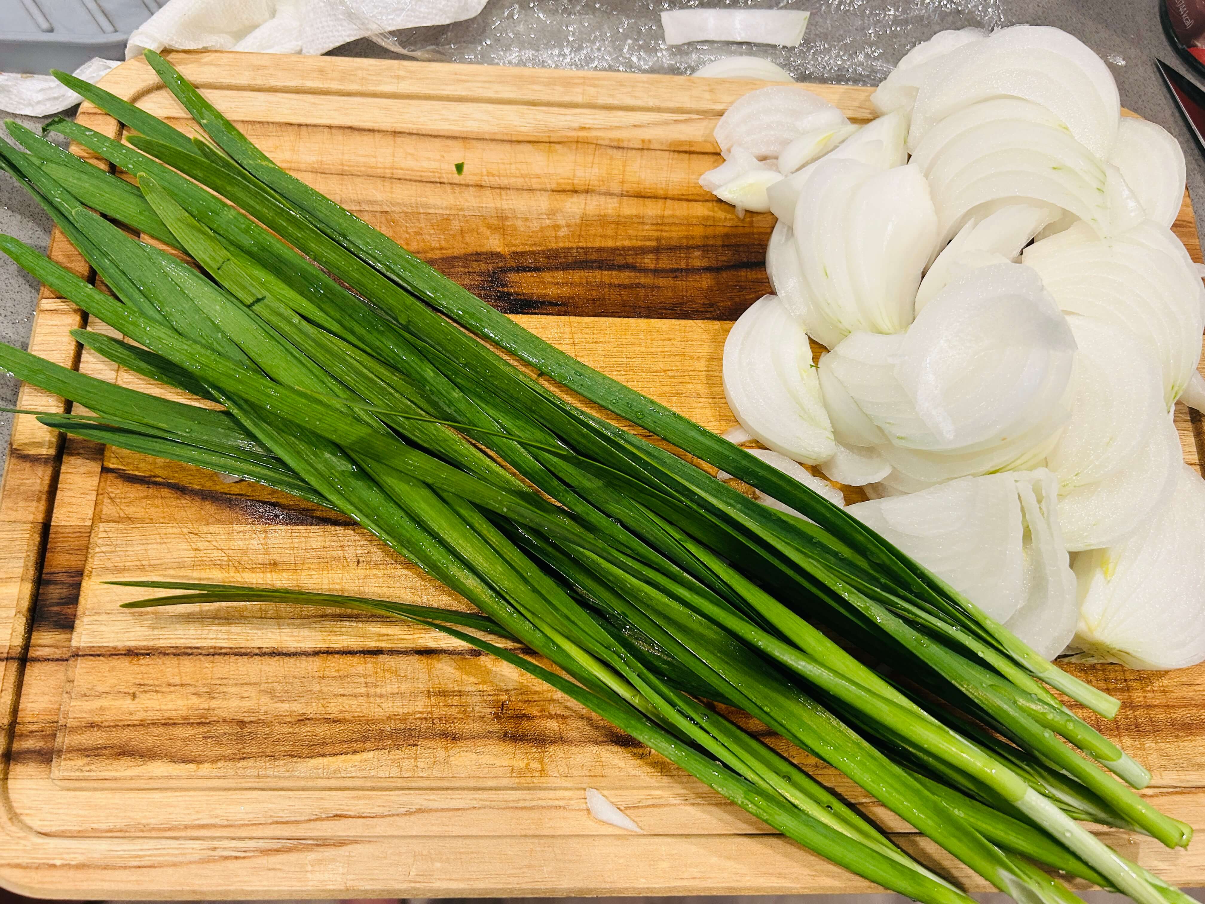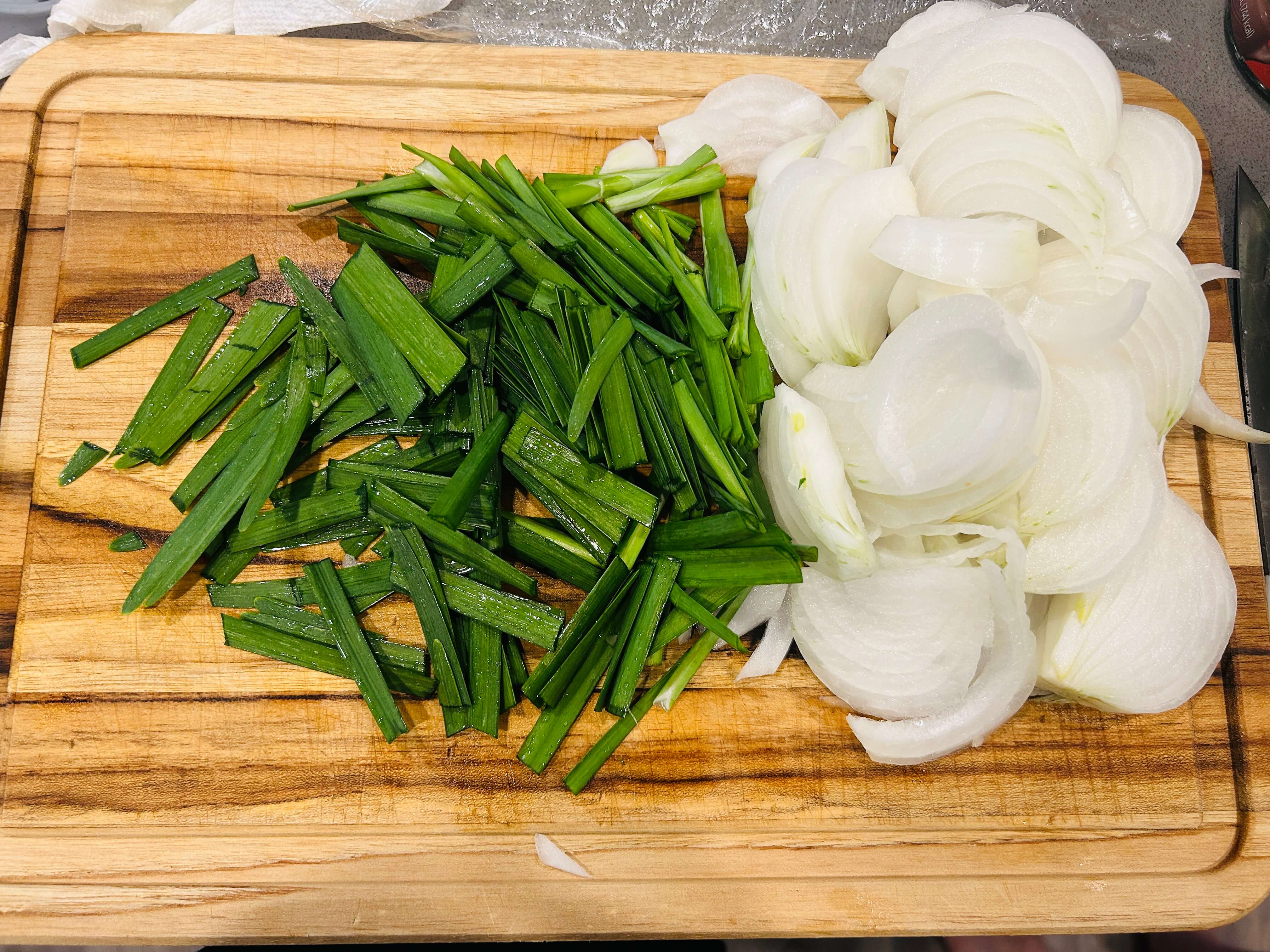 2. 부추는 깨끗이 씻어준 뒤 손가락 한마디정도로 잘라 준비해 줍니다.