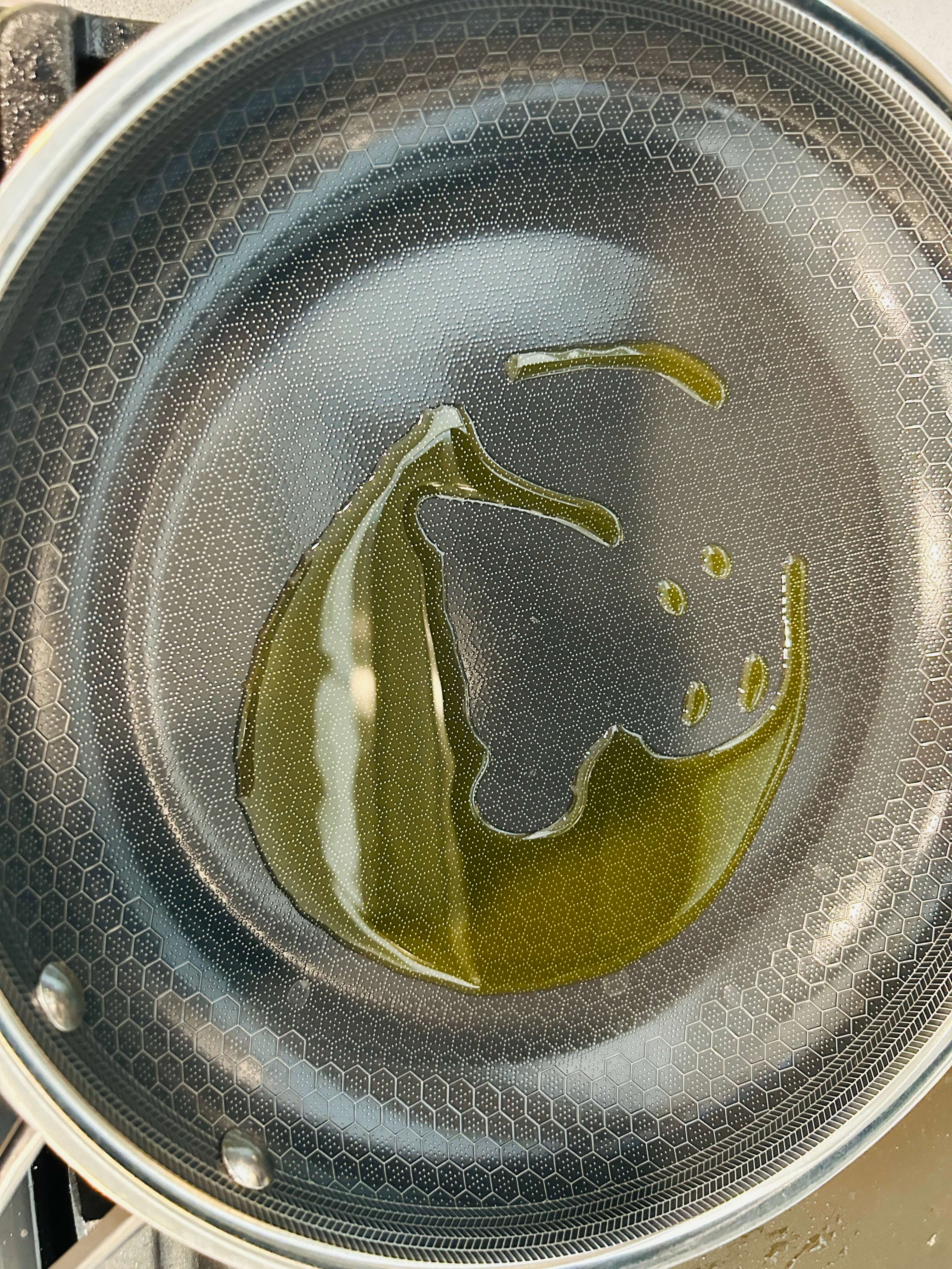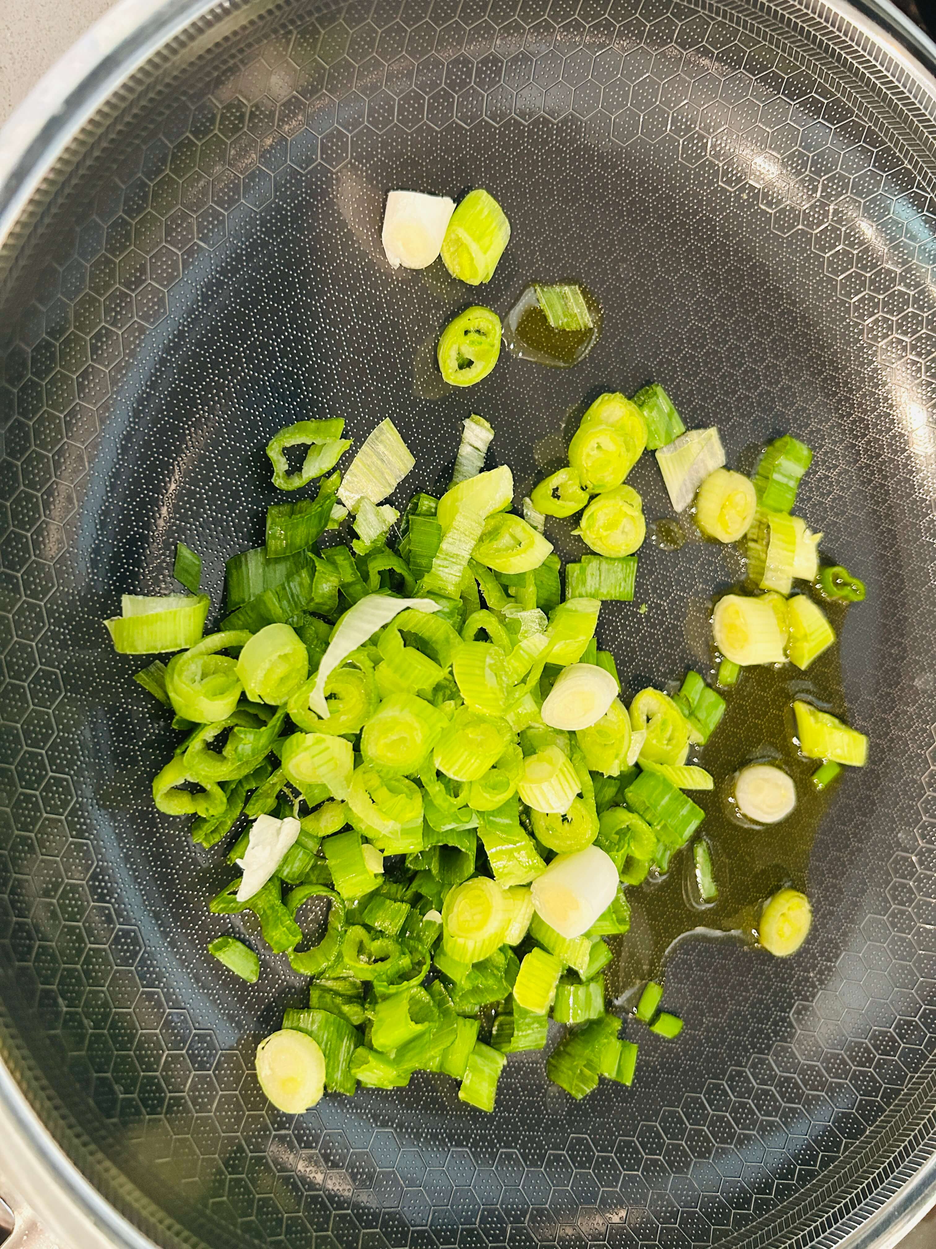 4. 팬에 기름을 두르고 파를 송송 썰어 볶아줍니다.