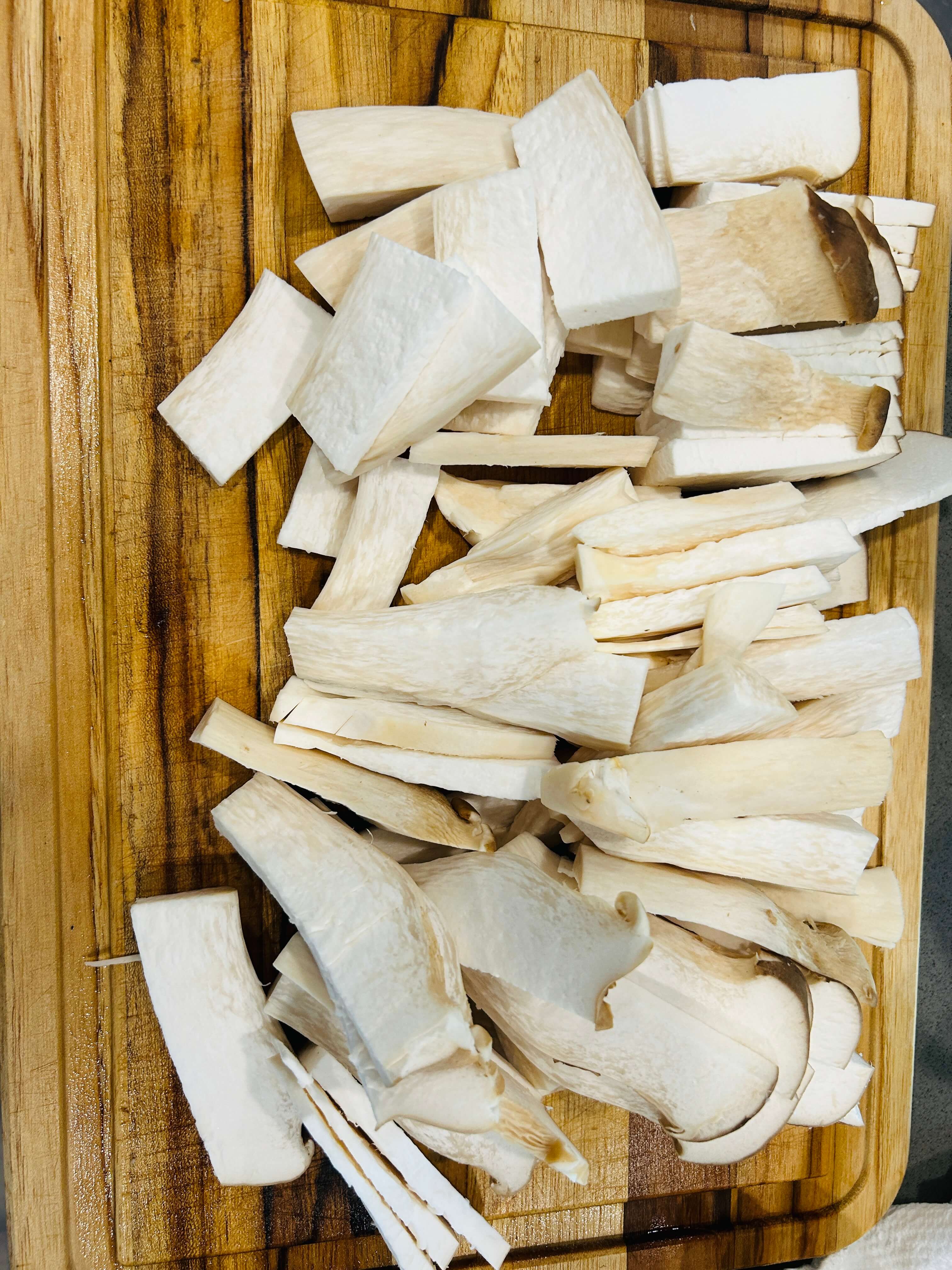 1. 버섯을 물에 살짝 씻어준 뒤 길게 잘라 준비해 줍니다.