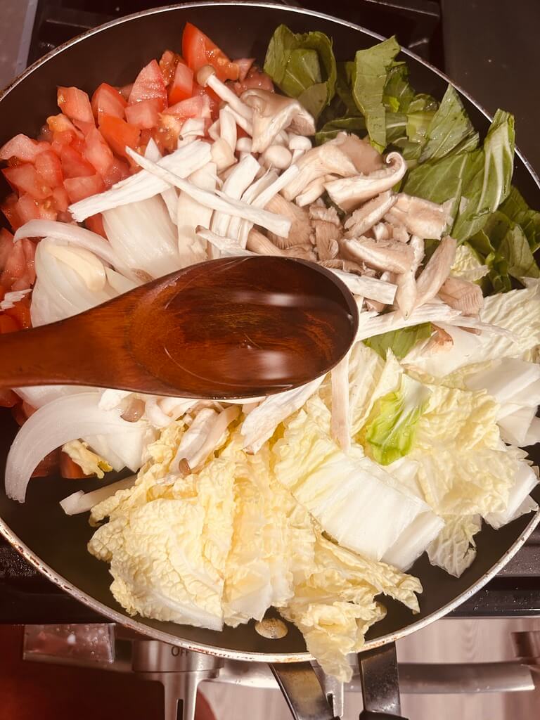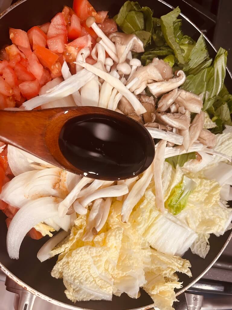 1. 토마토, 배추, 양파, 느타리버섯, 청경채, 마늘을 준비합니다.