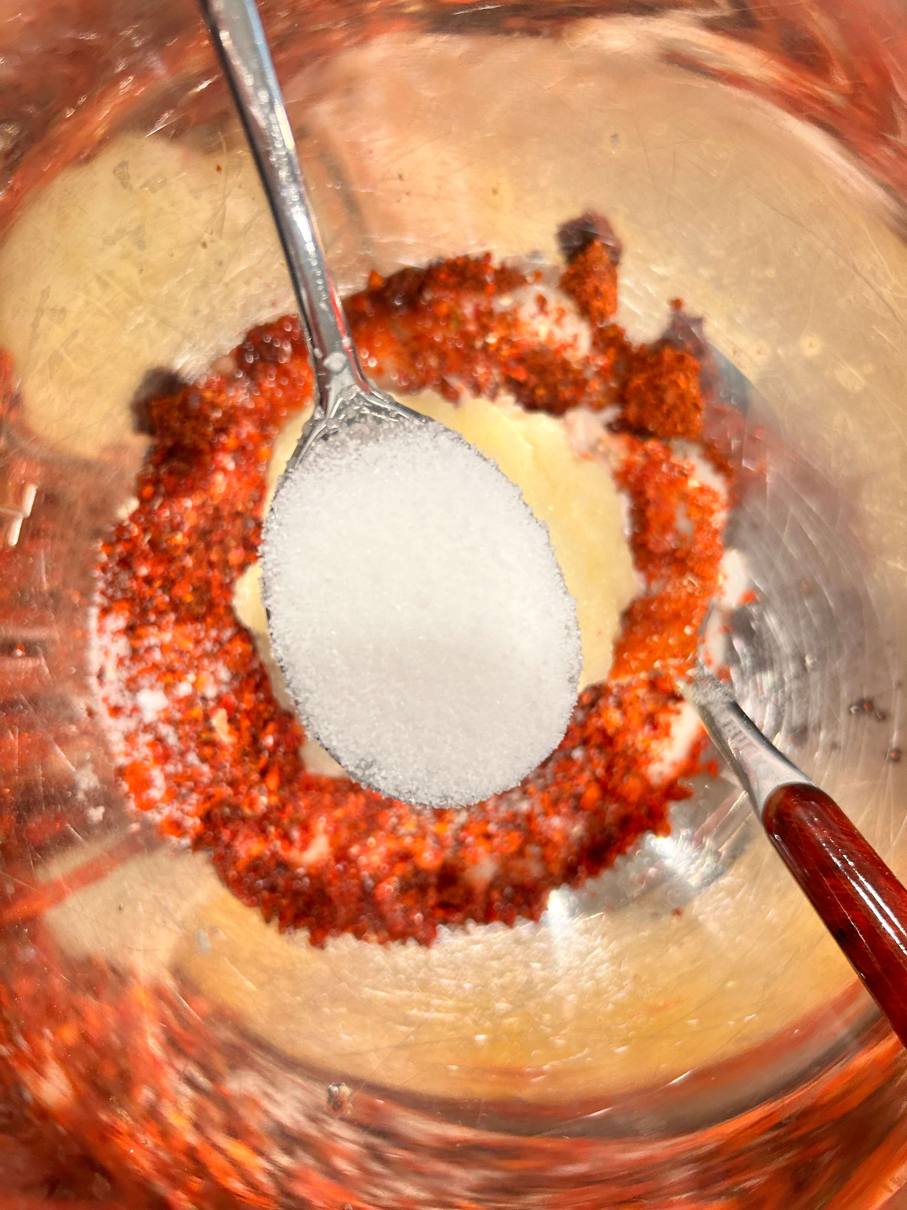 11. 설탕 2 숟갈을 넣고 양념을 잘 섞어줍니다.