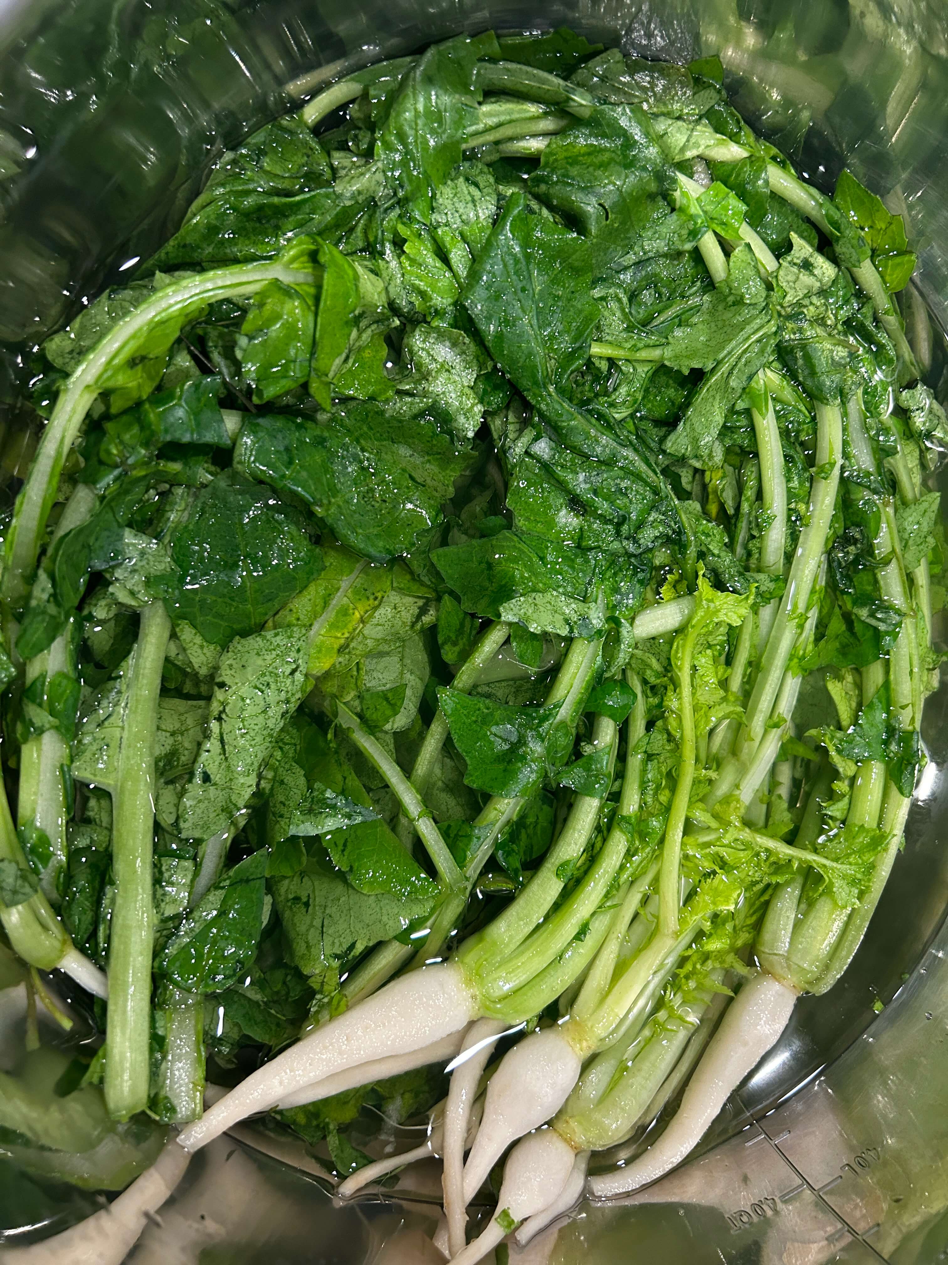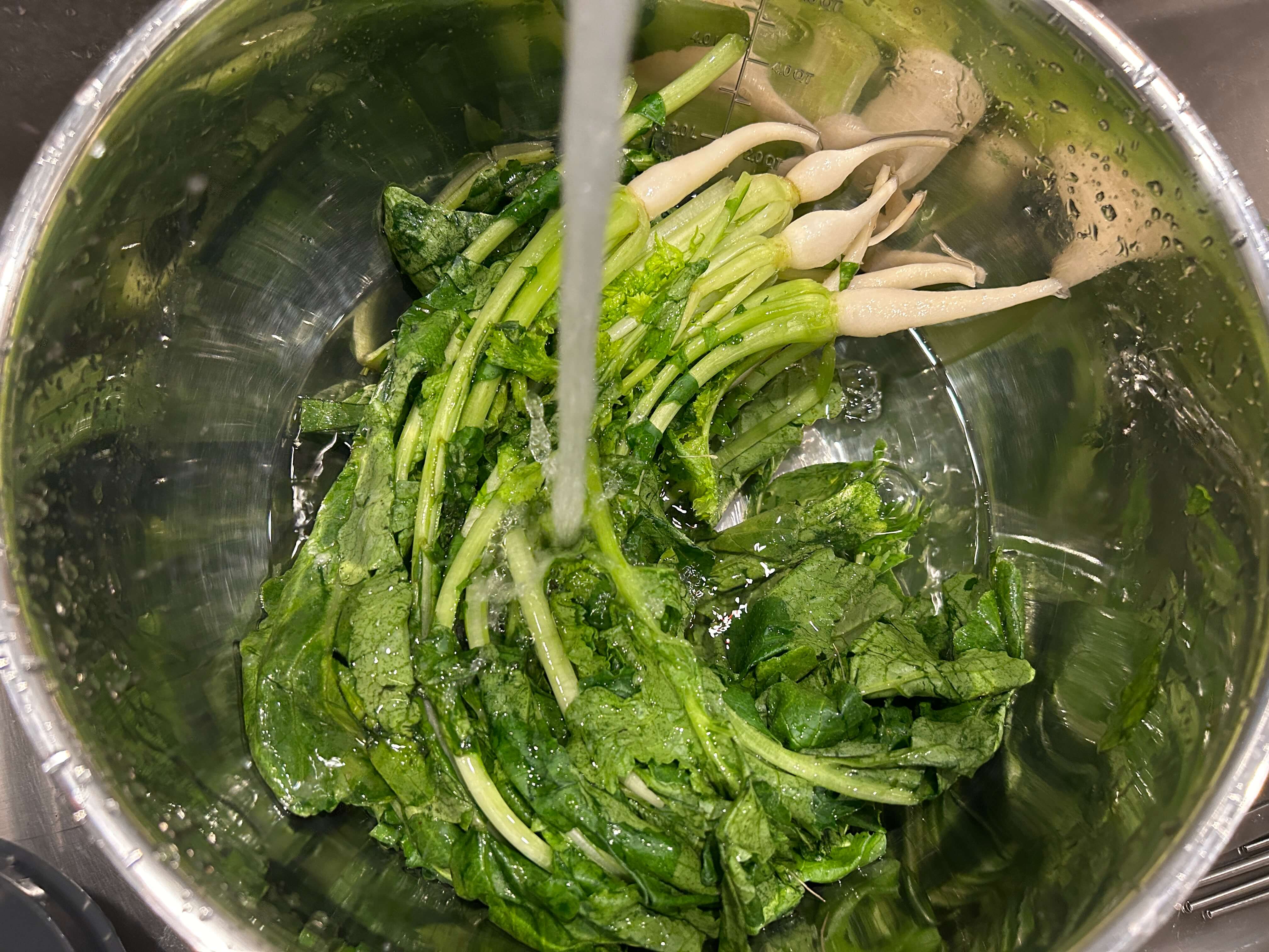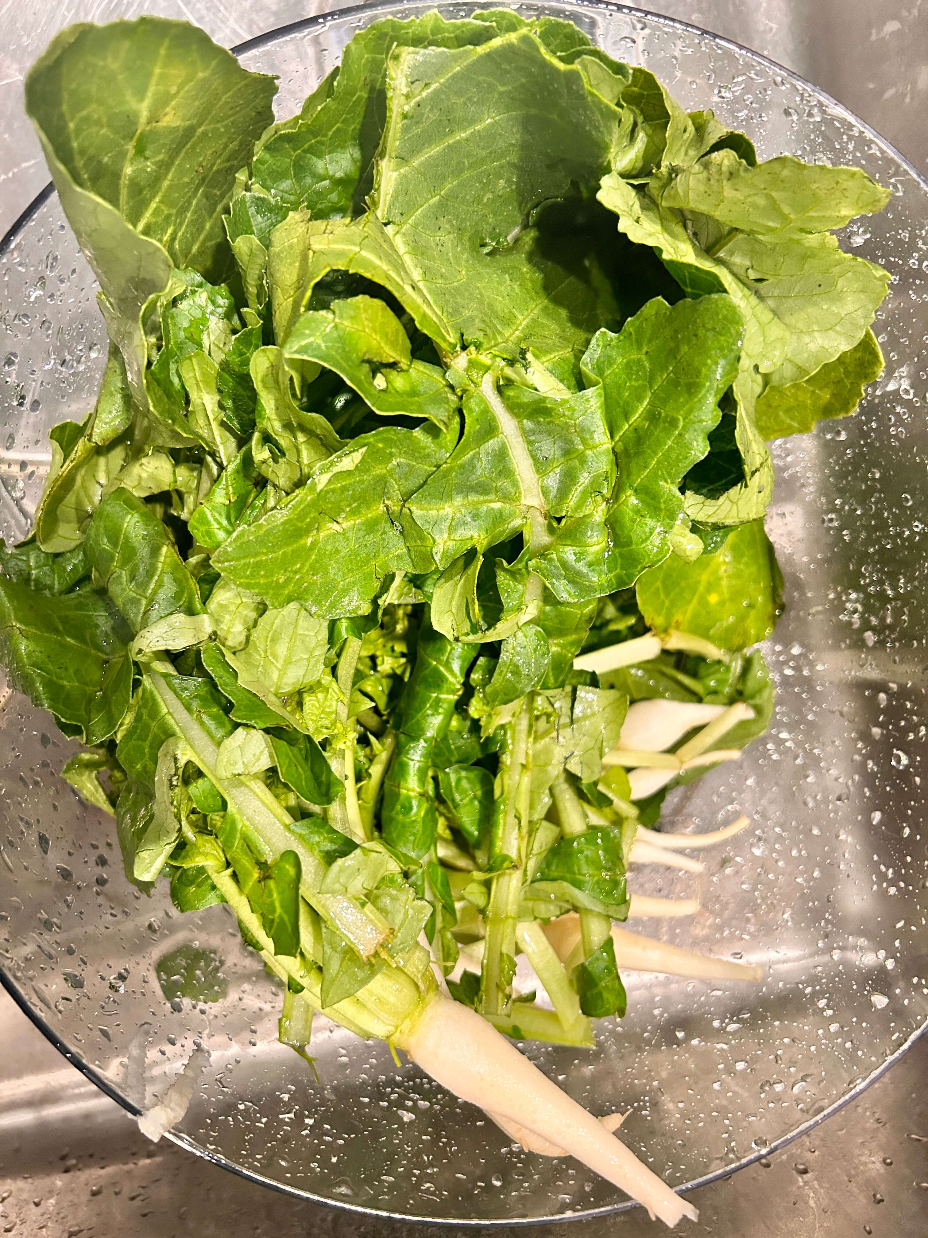 4. 절여진 열무는 물에 1~2번 씻어 물기를 제거해 줍니다.