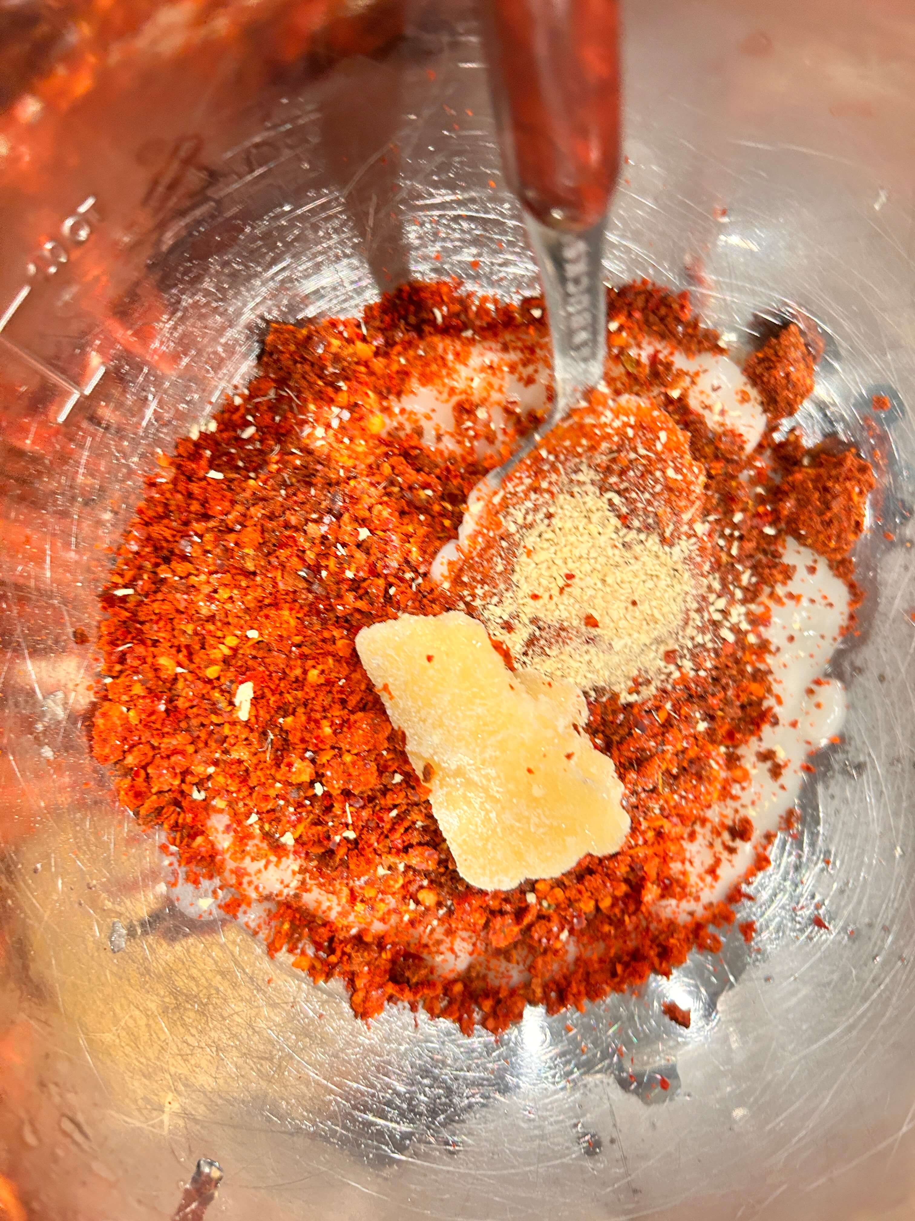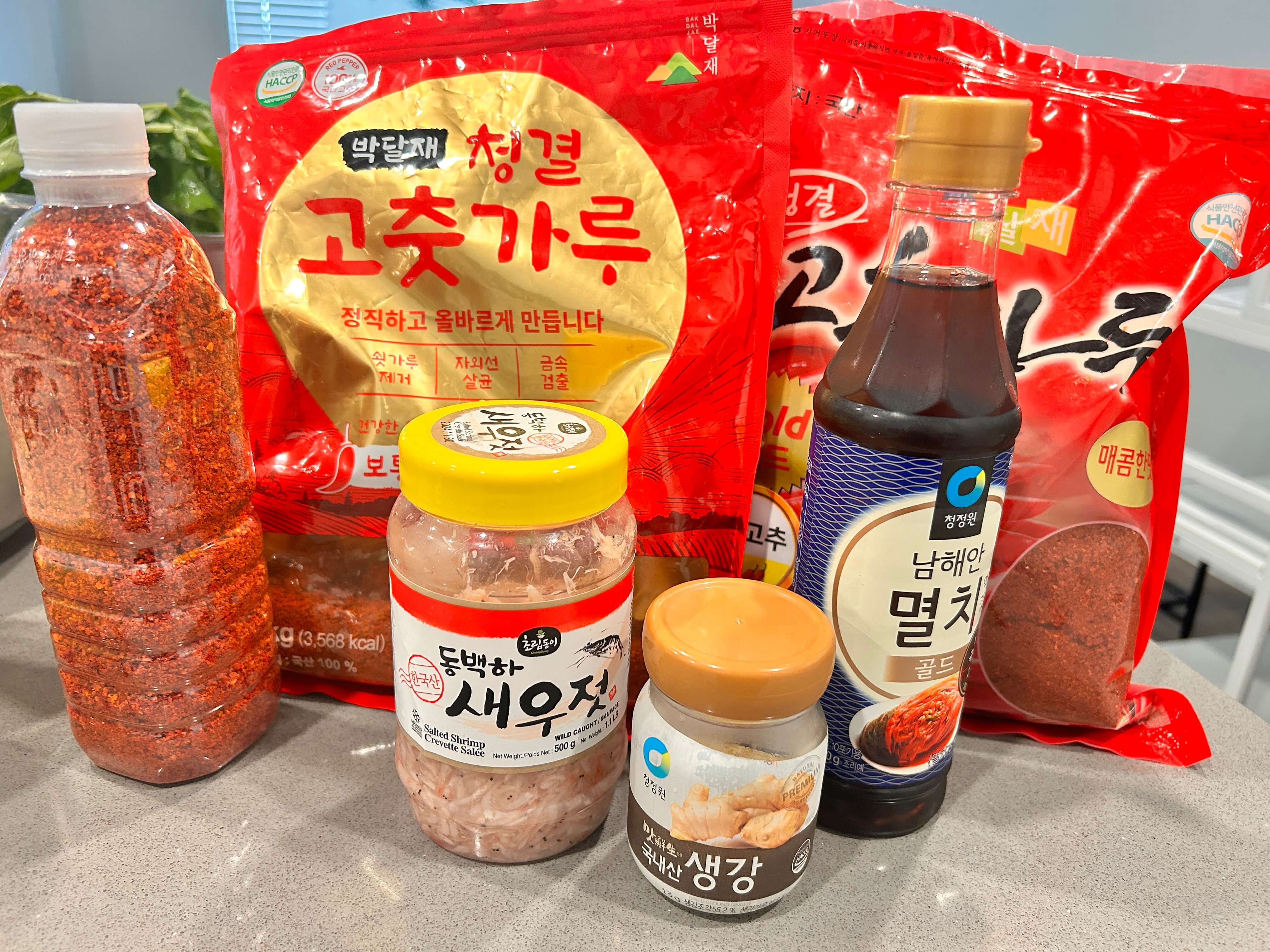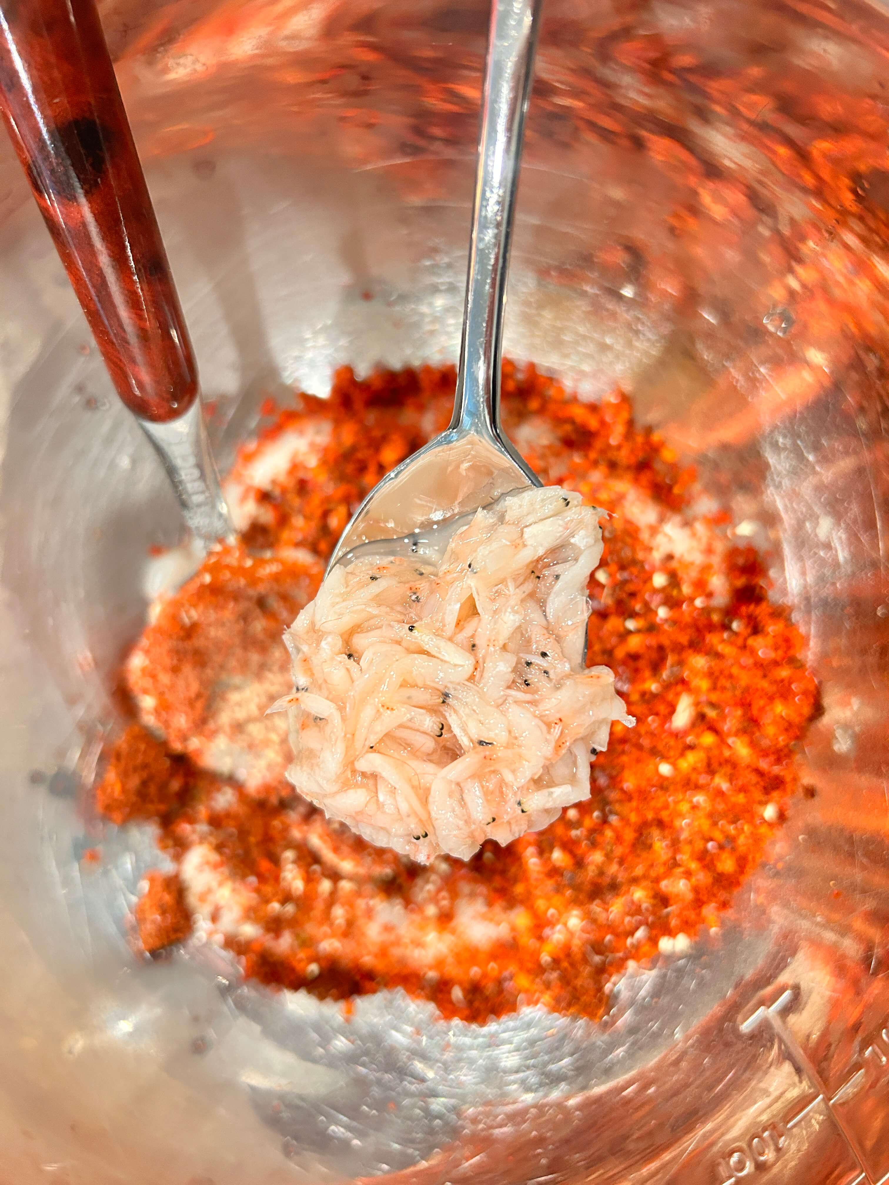 8. 열무김치양념으로 고춧가루, 멸치액젓, 새우젓, 생강가루를 준비해 줍니다.