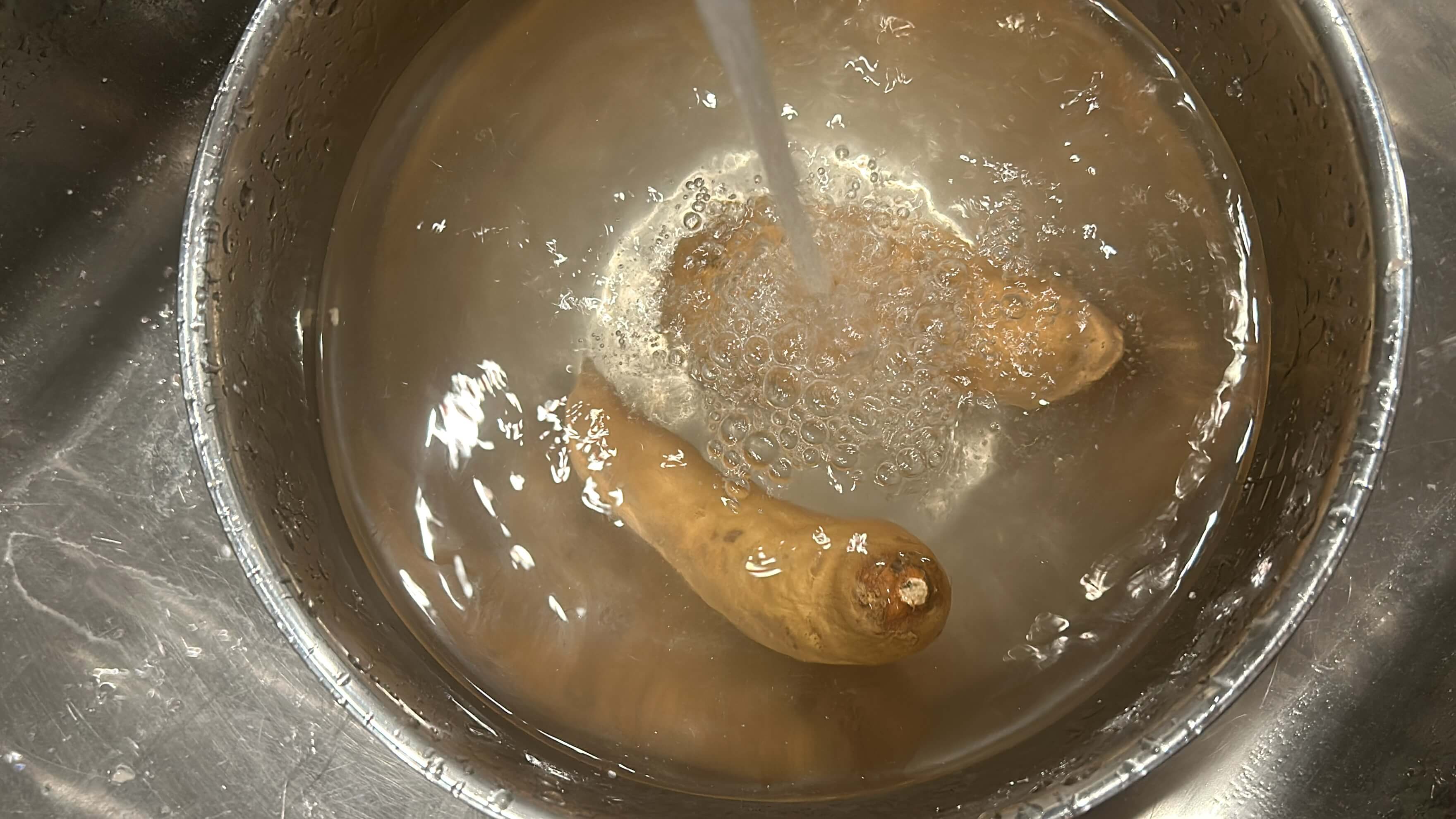 5. 데친 닭은 흐르는 물에 살짝 씻어줍니다.
