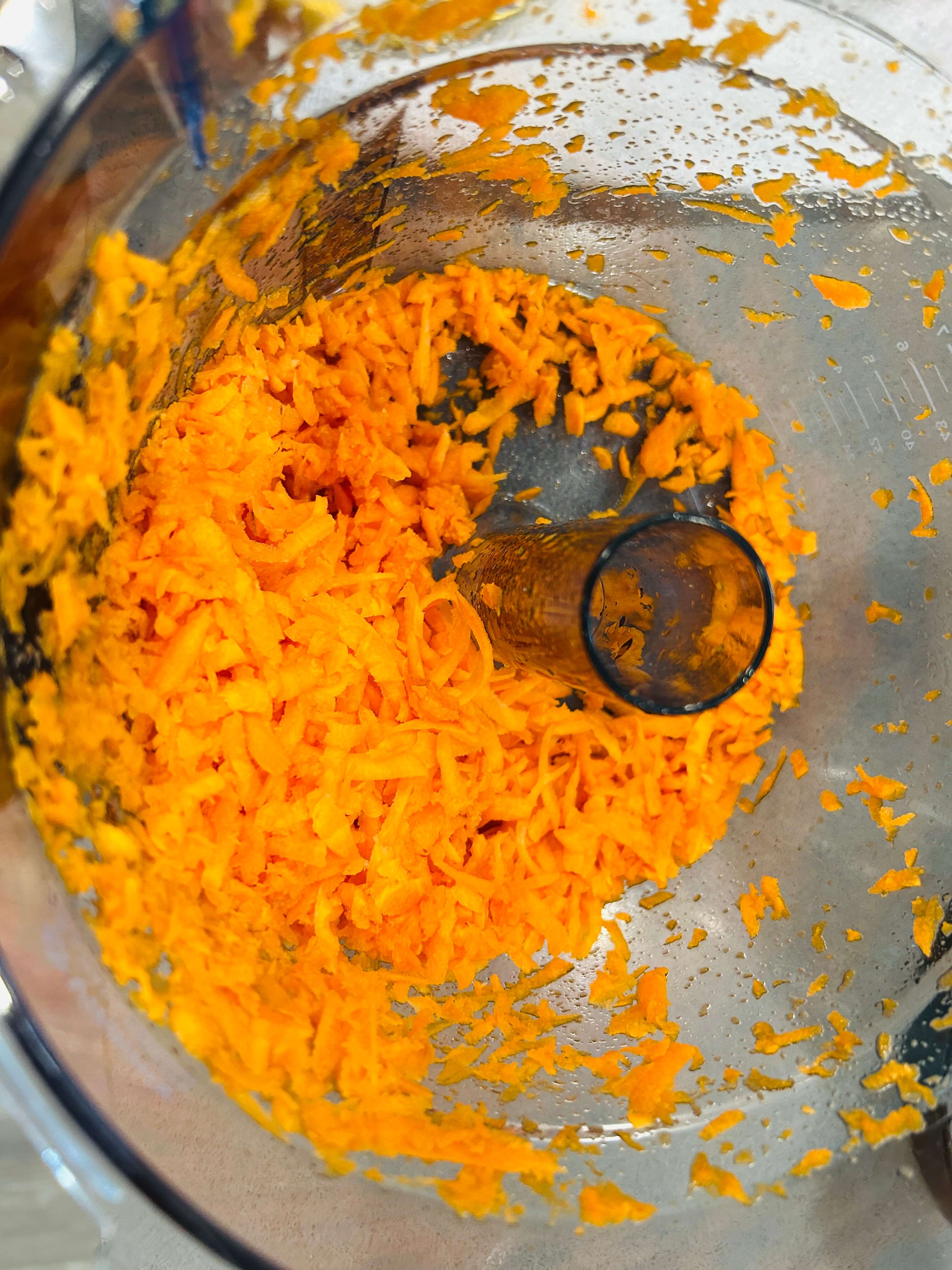 2. 당근을 얇게 채썰어 줍니다. (저는 푸드프로세서 사용)