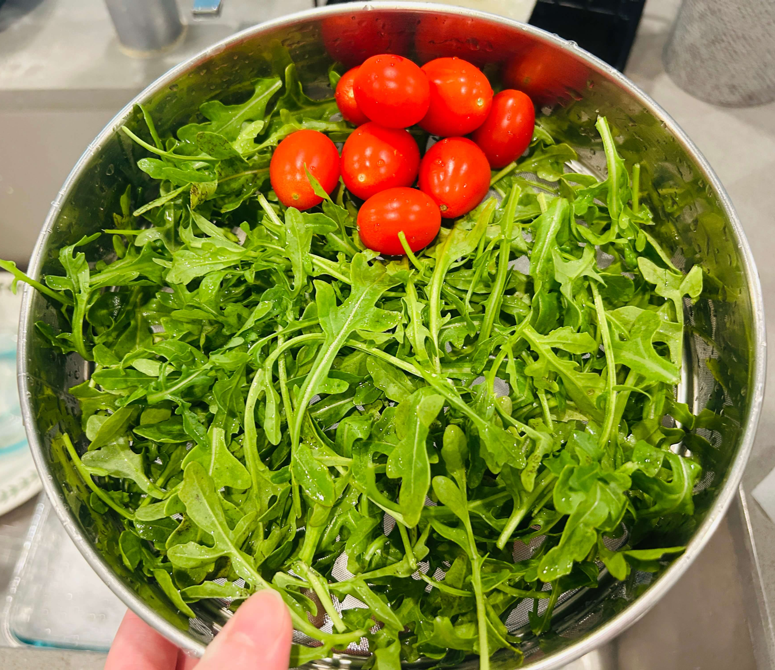 5. 야채를 씻어 준비해 줍니다. (저는 루꼴라와 토마토사용)