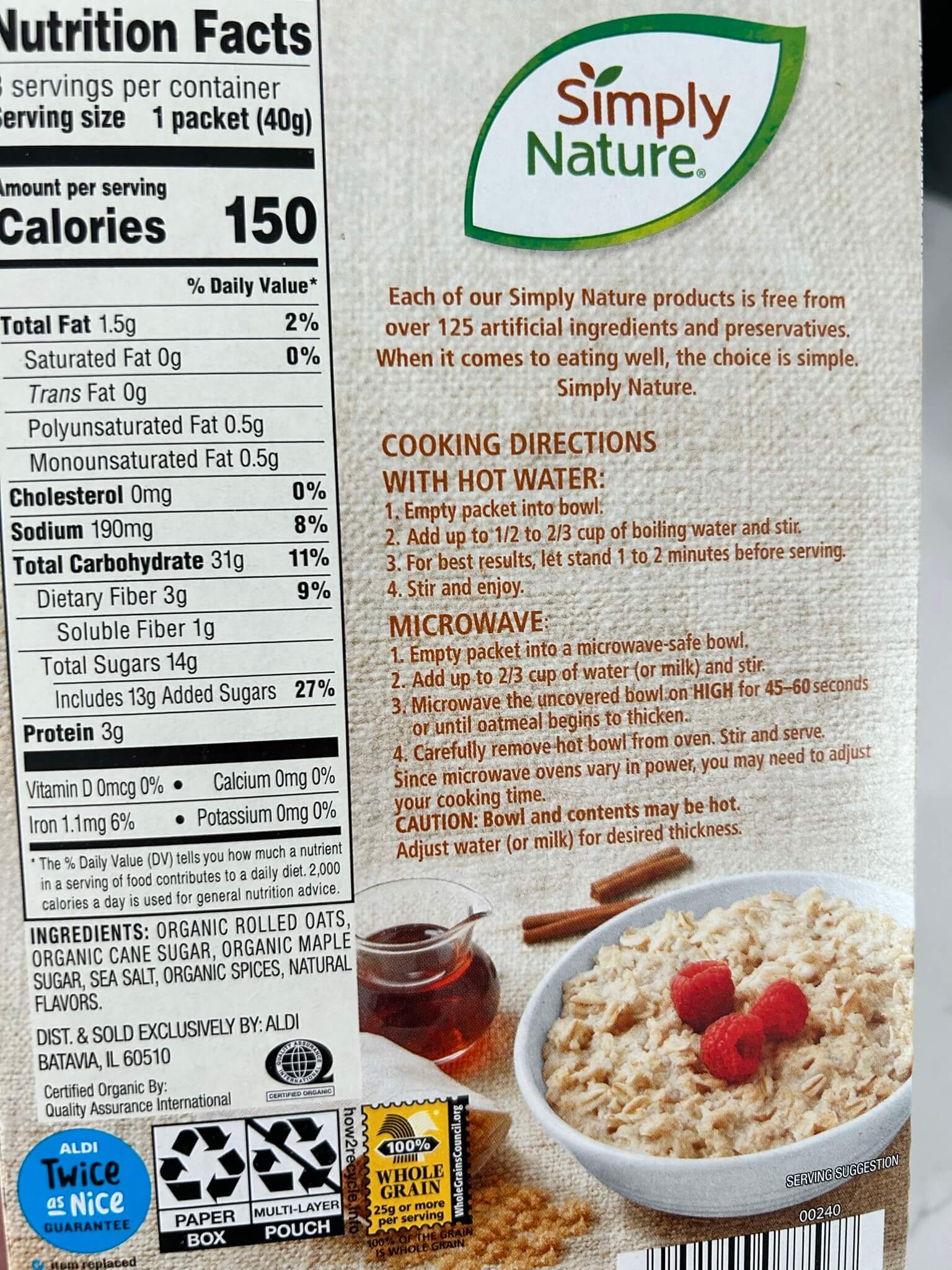 알디에 갔다가 오트밀을 사왔습니다.