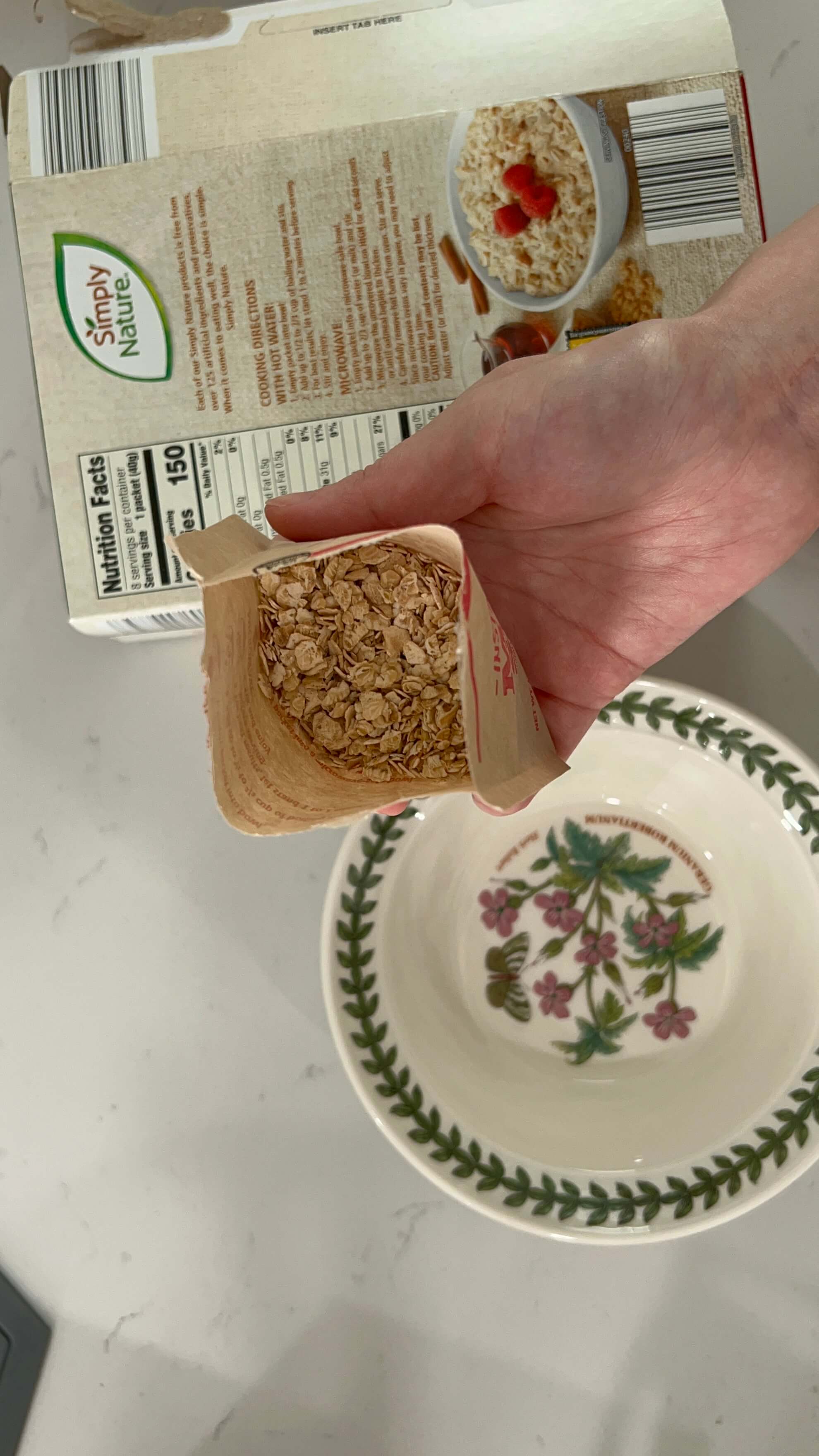 이 낱개 포장지안에 오트밀이 들어있습니다.
