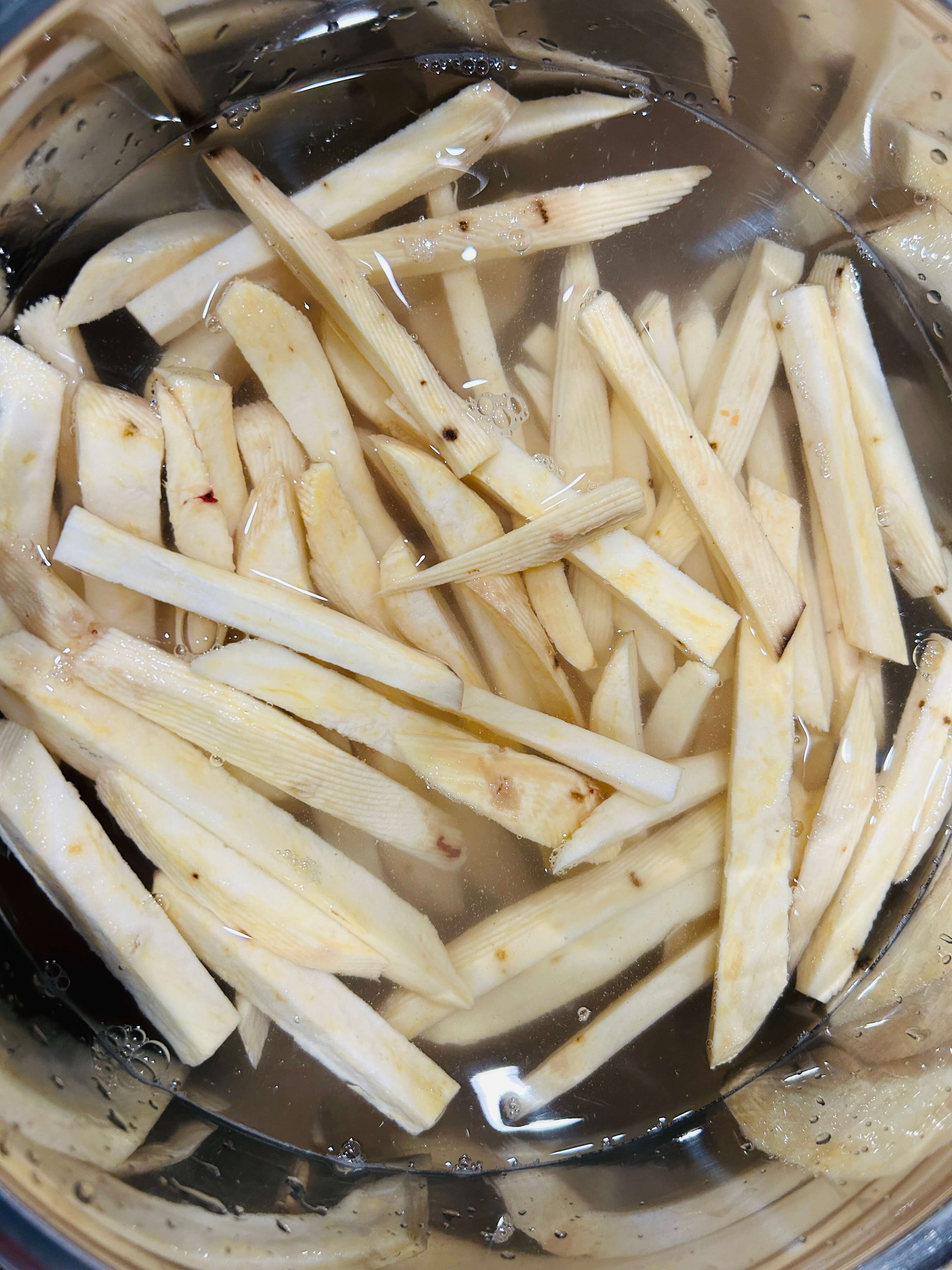 3. 고구마를 물에 담가 전분기를 제거해 줍니다.